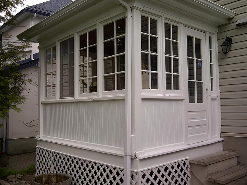 This house in Parkdale featured a small sun room practically surrounded in windows. Great attention to detail and preparation is required in such a job to ensure that just the mullions are painted and not the glass.