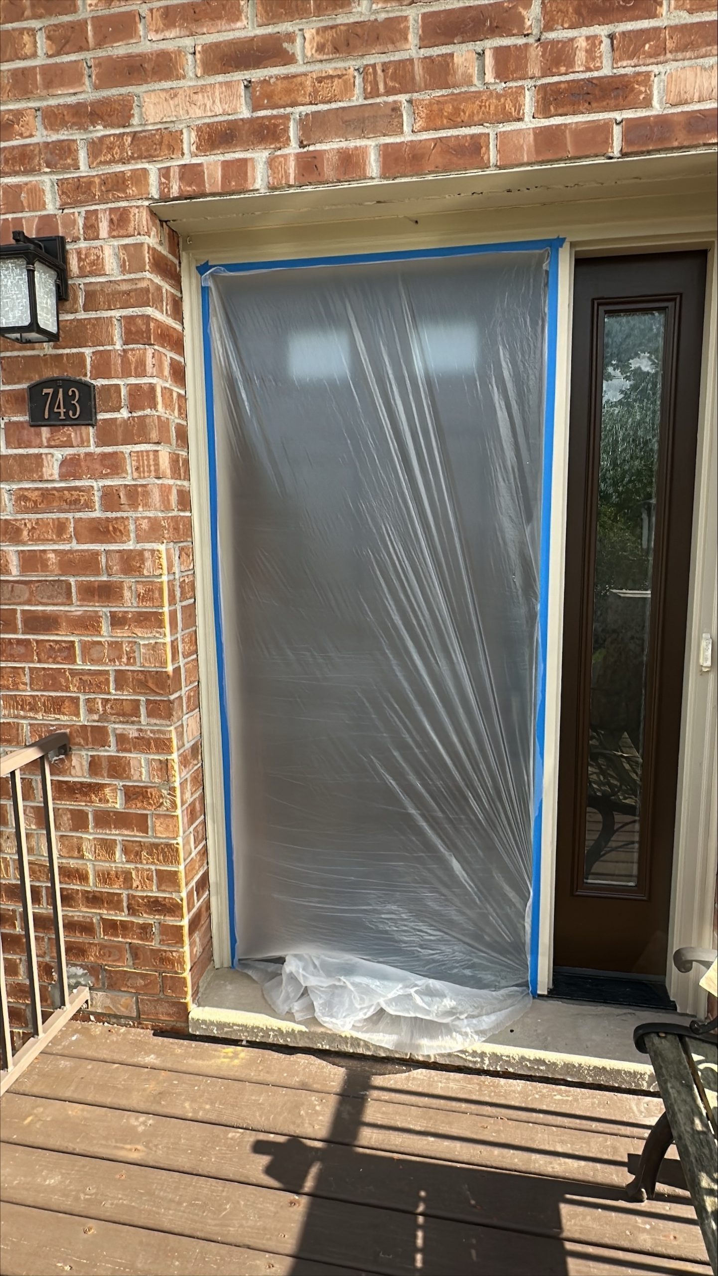 Watch our crew in action as a team member carefully applies a fresh coat of paint, transforming this entry door with precision and professionalism.