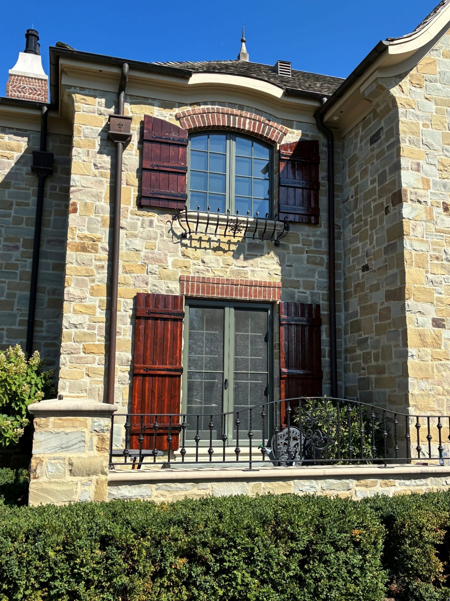 The work covered nearly every exposed wood element of the home, including the doors and frames, soffits, garages, beams, balconies, shutters, trim, and more! Each of these areas was carefully treated to achieve uniformity, durability, and a beautifully restored appearance.