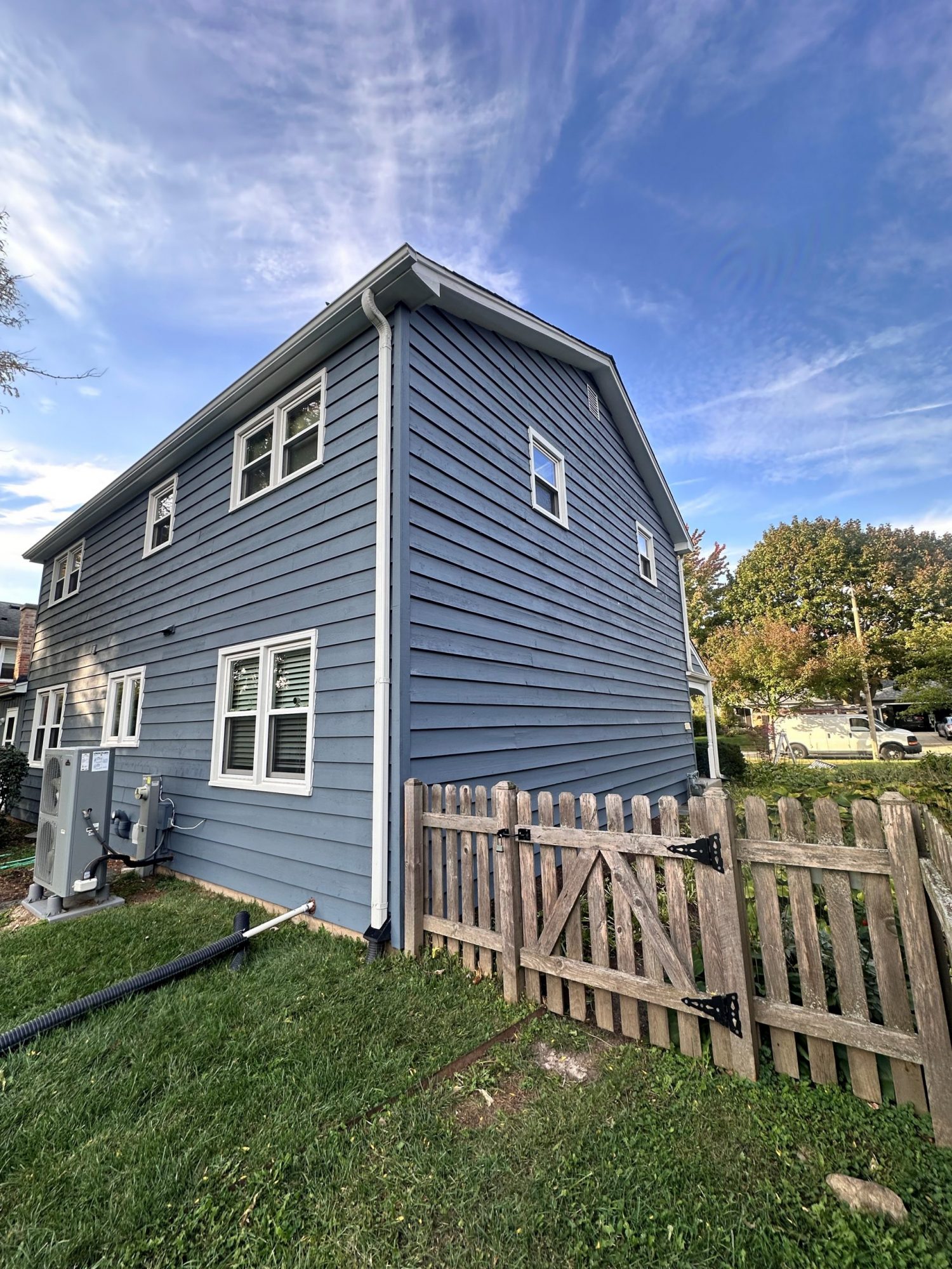 After surface preparation—including washing, scraping, and securing loose nails—the team applied two coats of high-quality Sherwin-Williams paint and stain, resulting in a durable, refreshed finish that restored the home’s curb appeal and structural integrity.