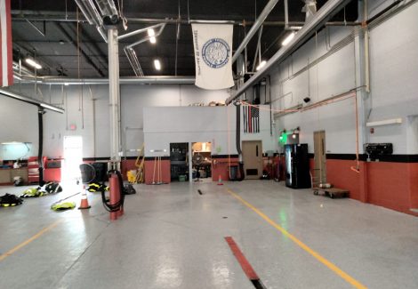 Painted new color scheme for cinder block walls in truck bay of local fire dept.