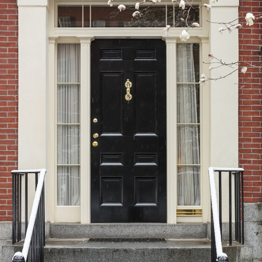 While red doors have been popular for quite some time, the newest trend is to choose a deep, dark burgundy or cranberry. It’s really popular for homes that are black and white. The color is inviting and soothing and sets a great tone for your home.