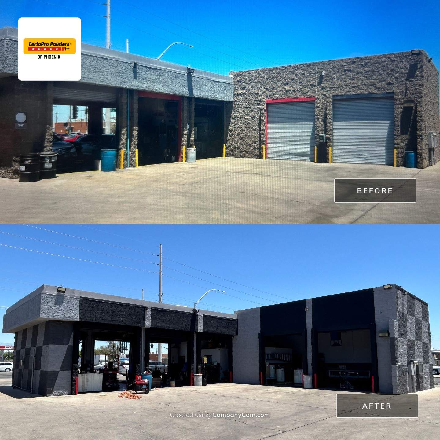 Our painters recently completed a full color change service at a Grease Monkey shop in Phoenix. The building was going through an interior and exterior rebrand. This project took us 1 week to complete. You can learn more about all of the project details below.