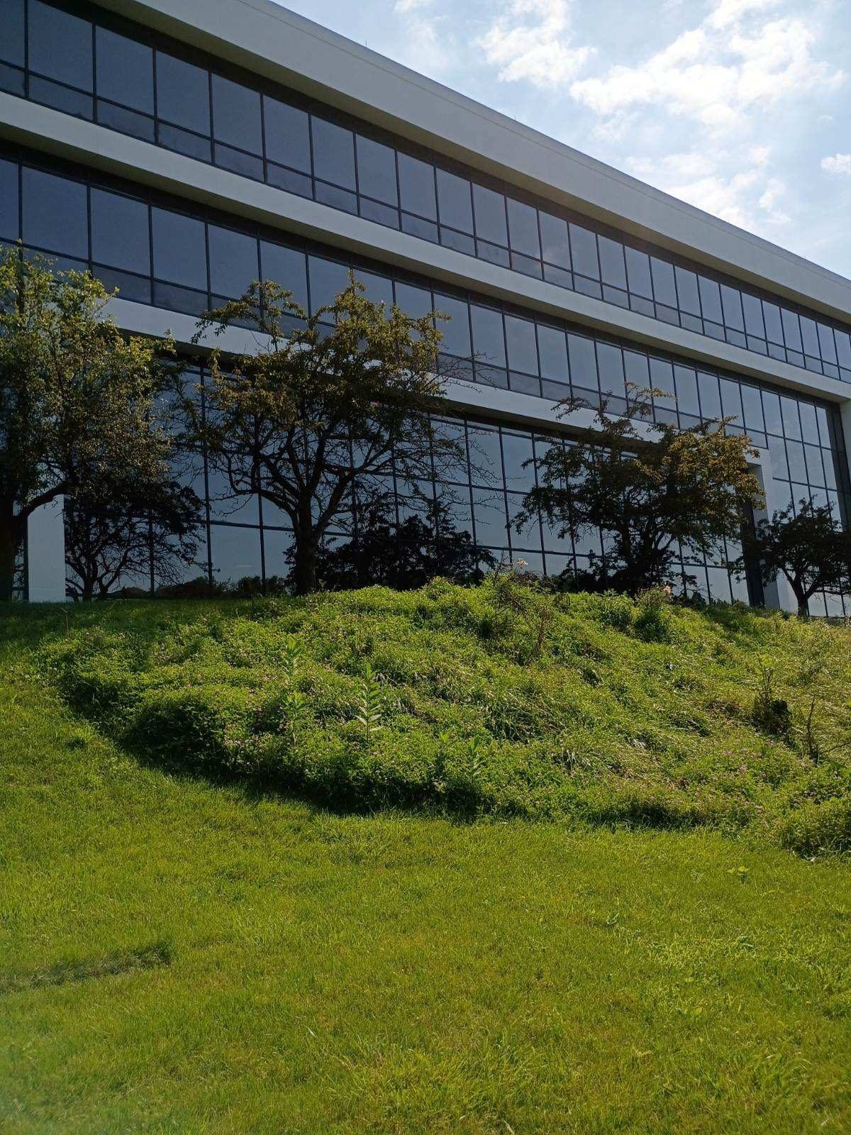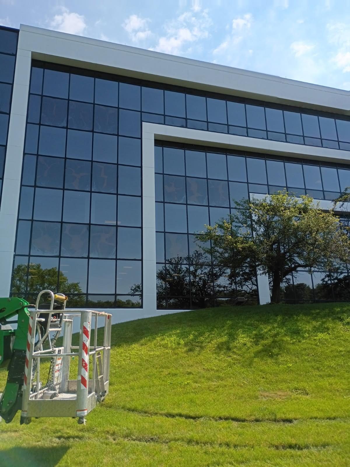Check out this challenging office building exterior transformation completed by the professionals at CertaPro Painters® of Pittsburgh East. This involved getting a 90 foot lift to reach certain parts while working on difficult terrain.