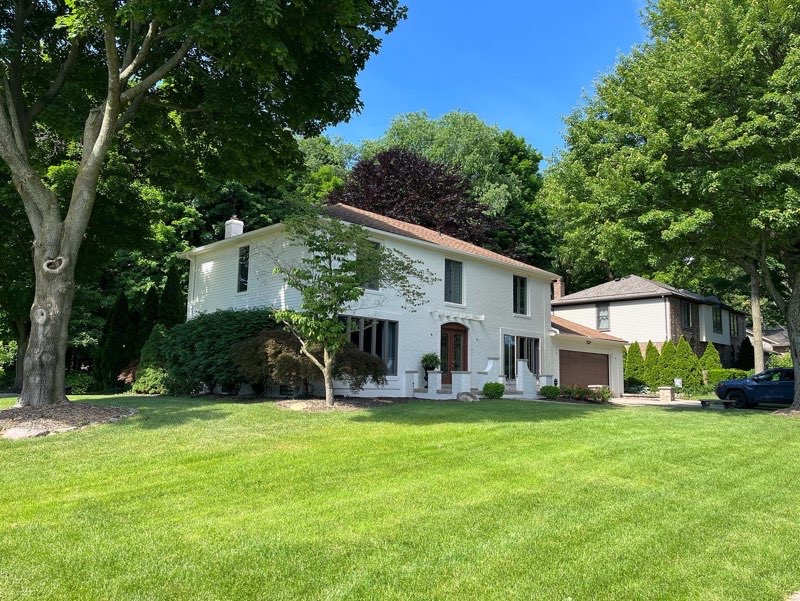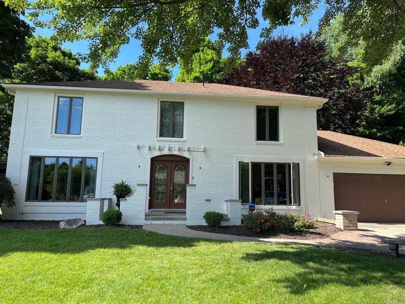 Brown brick home completely updated to white brick.