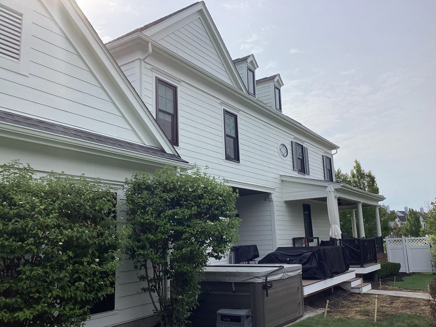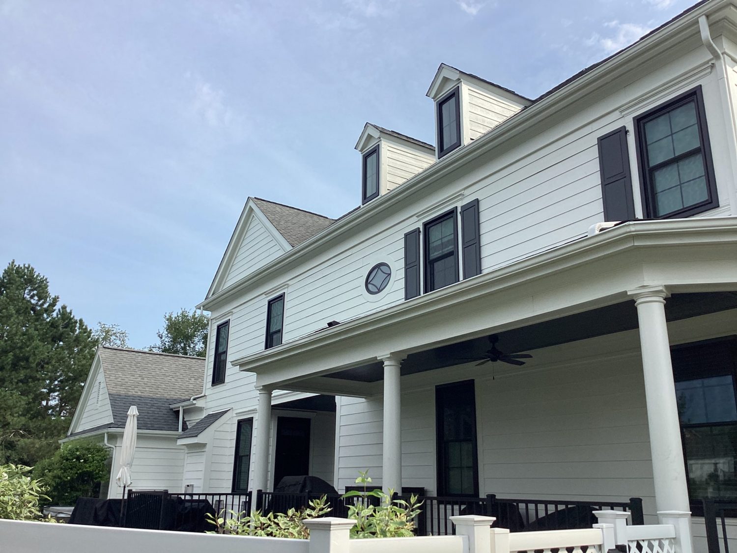 From faded purple to beautiful soft white and black accents. With the composite deck, railings, and black windows now installed, the paint job looks just that much better.
