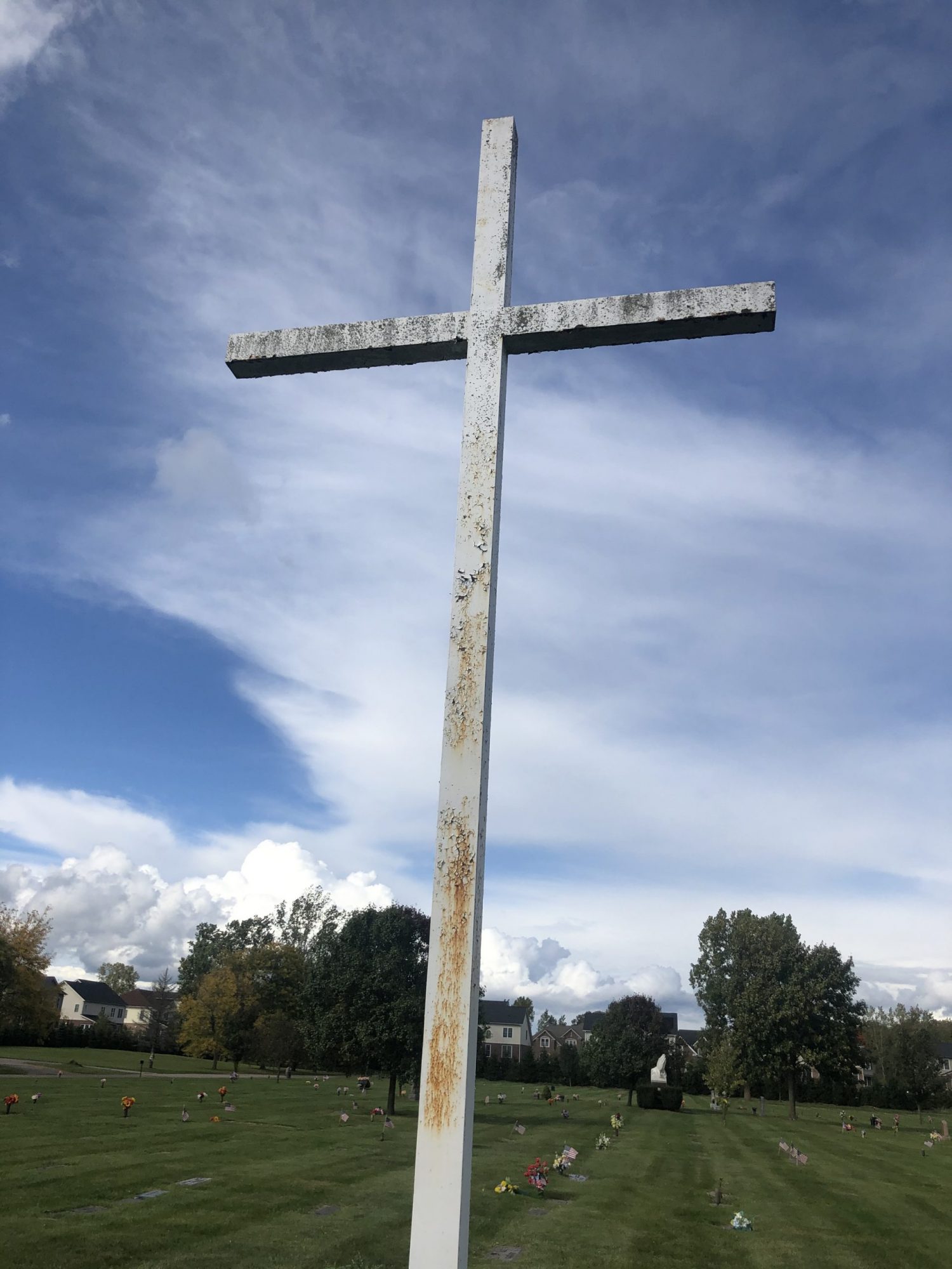 The memorial cross at Knollwood Memorial Park cemetery was showing weather wear but some repair to the surface and new paint, the cross is back to it’s formal glory.