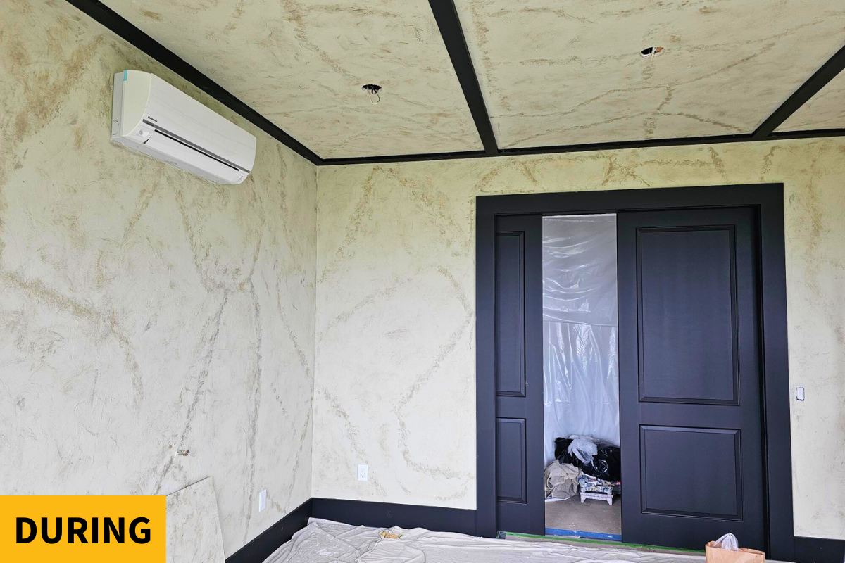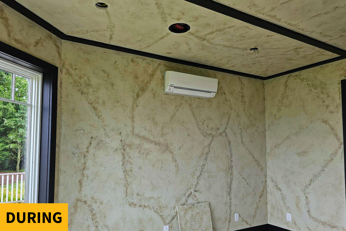 The experts at CertaPro Painters® of Port Jefferson NY completed this Spa Room Project in East Northport, New York. The walls have a Custom Venetian plaster and black trim throughout.