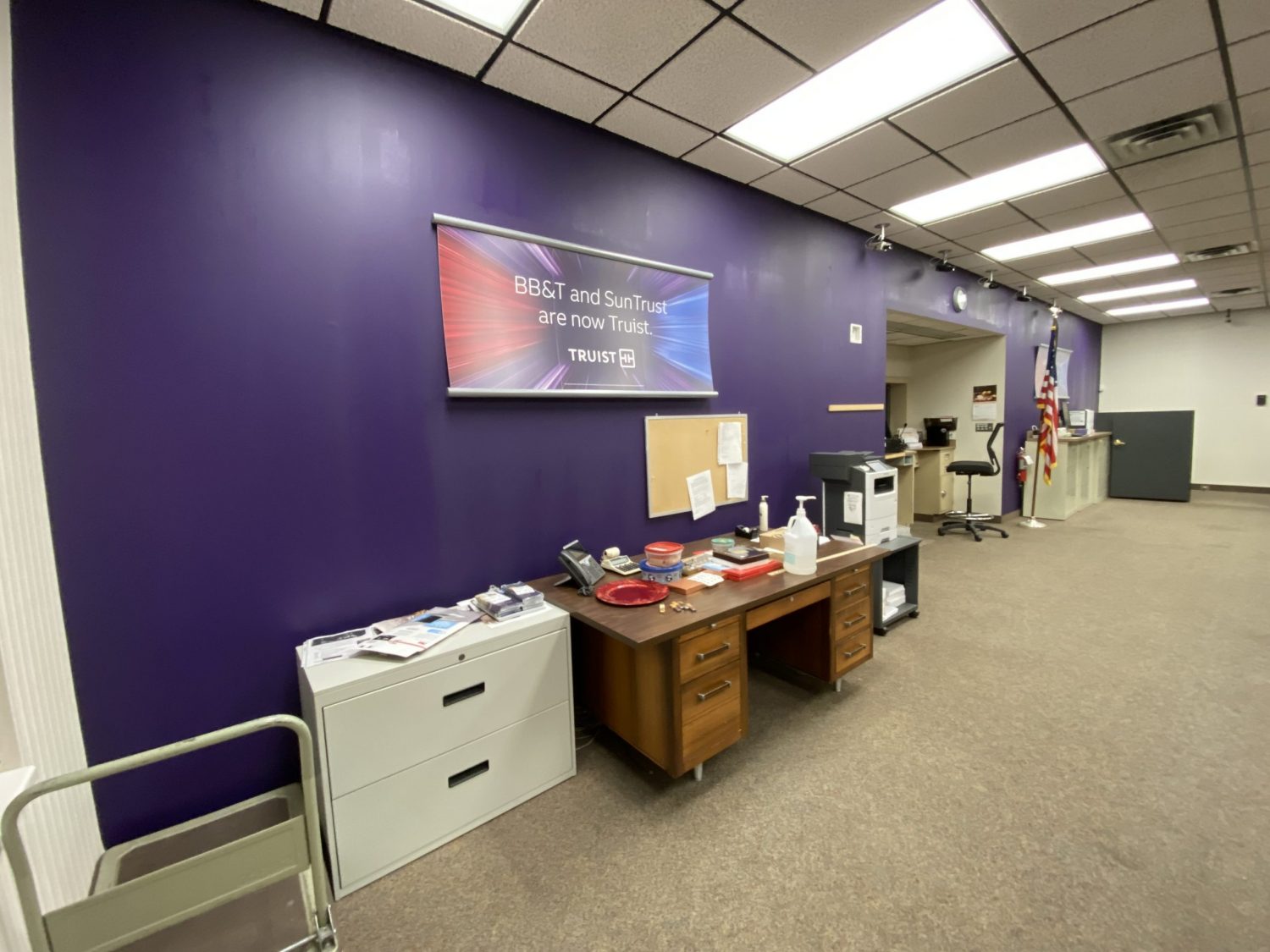 Project Involvement: Truist Bank was in the process of rebranding 83 locations in South Central Pennsylvania. The project required extensive preparation and included the removal of monitors from walls, drywall repair, and patching of holes. Additionally, walls with wallpaper needed to be skim coated, along with tasks such as light carpentry and overall painting.