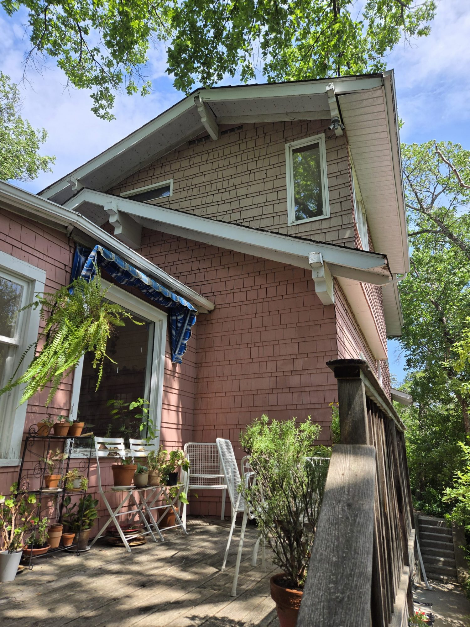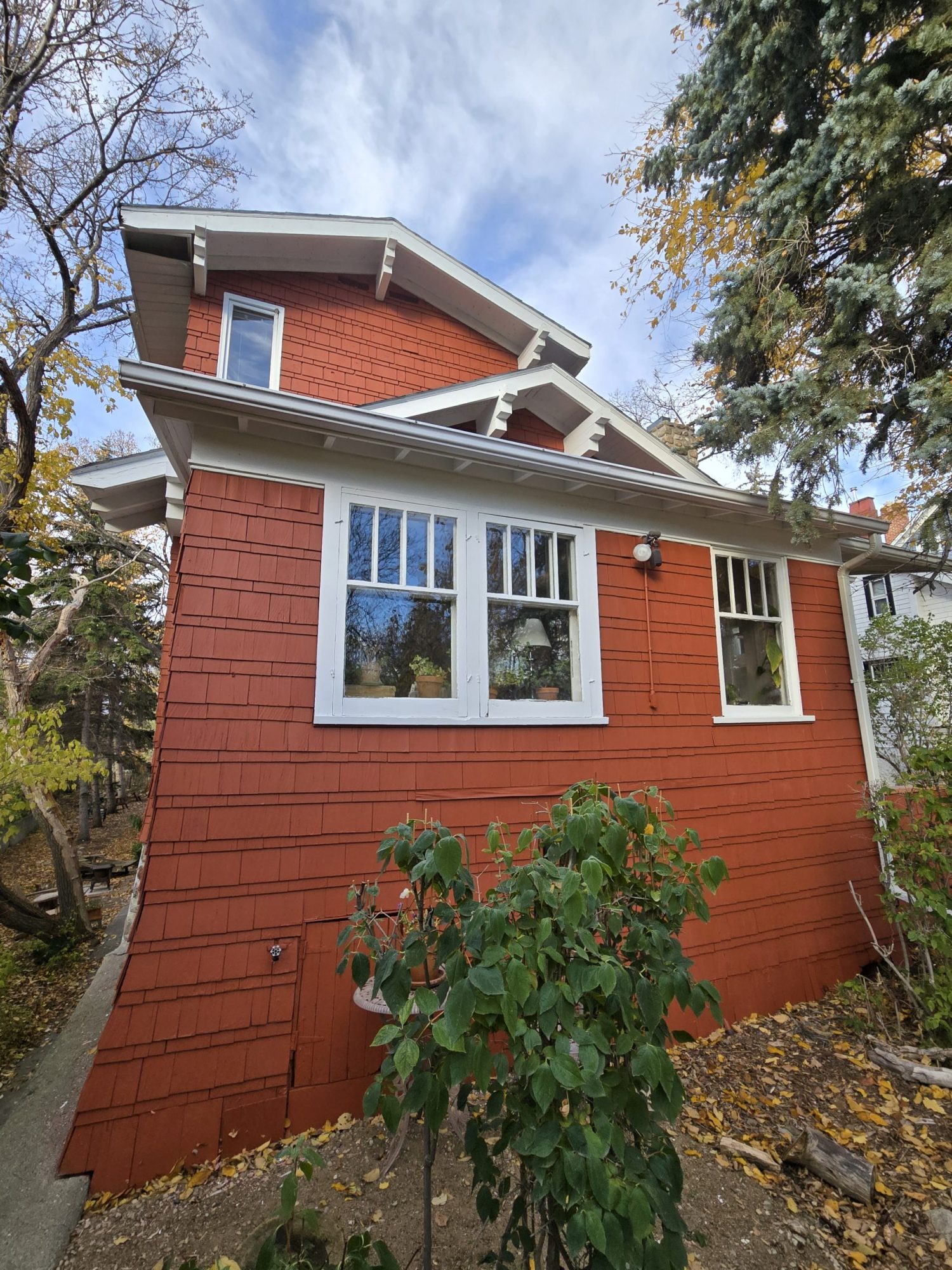 The restoration involved comprehensive surface preparation across all siding and trim. Our team scraped and sanded the entire exterior to remove layers of deteriorated paint and ensure proper adhesion for new coatings. Once prepped, the home received a complete repaint, using high-quality materials to restore the rich color and character befitting a property of its age and significance.