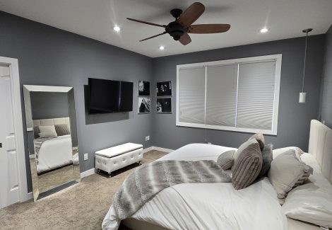 CertaPro Painters® of Regina SK completed this full exterior transformation, updating the home from dated early-2000s grey tones to a modern white and black color scheme. The high-contrast palette gives the property a clean, contemporary look, with black accents enhancing the crisp white finish. The result is a refreshed exterior with a completely updated feel.