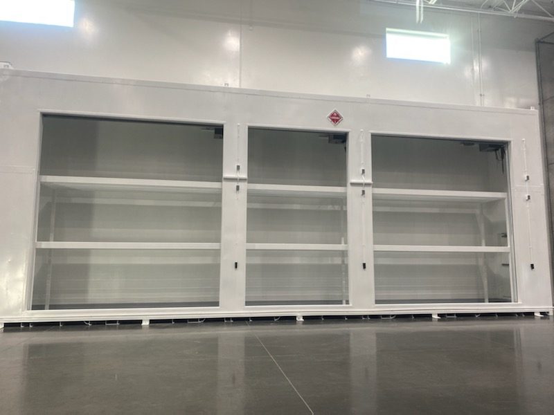 The storage unit now blends seamlessly with the rest of the warehouse and has a tough finish that will hold up against normal warehouse activity for years to come.