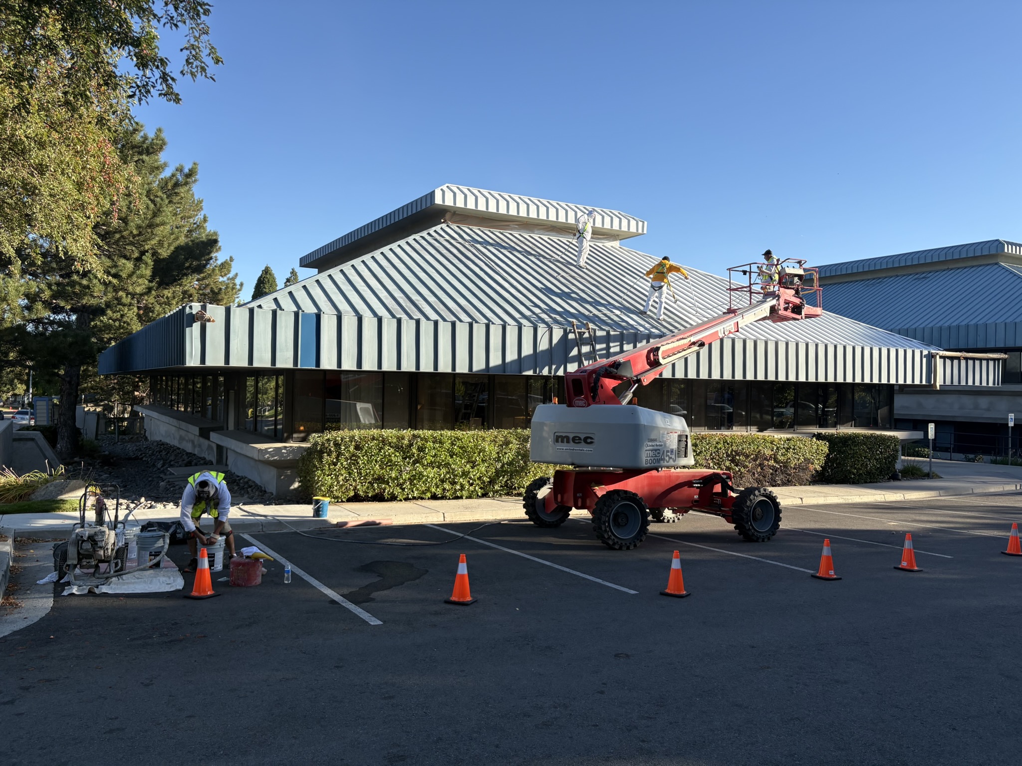 The professionals at CertaPro Painters® of Reno, NV refreshed the roof of a large commercial building with a thorough pressure wash and repaint. See our team at work here.