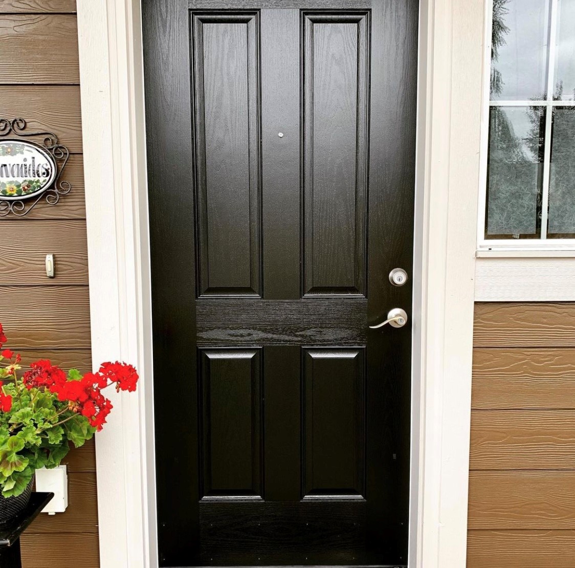 We painted this local homeowner’s exterior front door with a fresh coat of black paint.