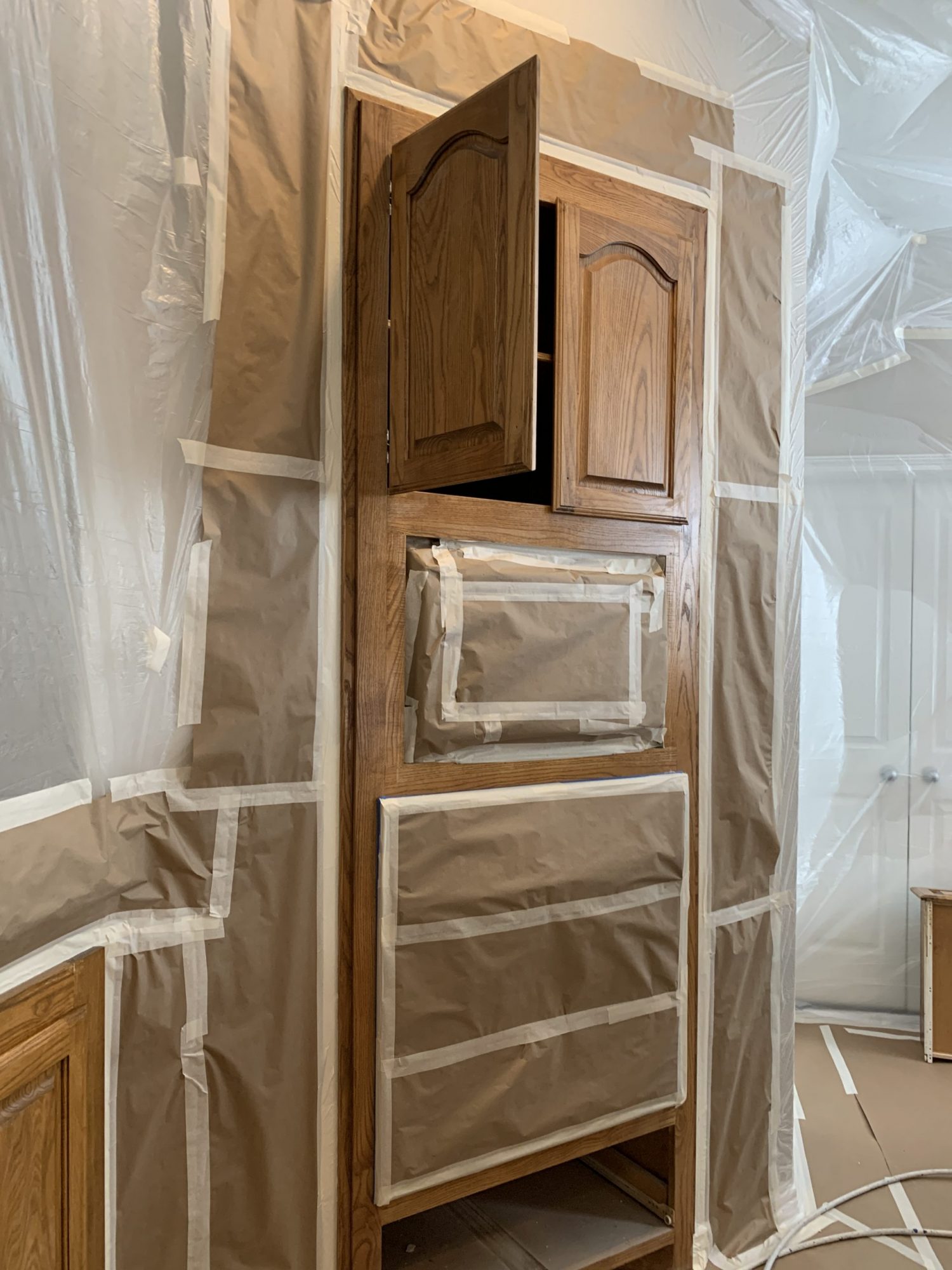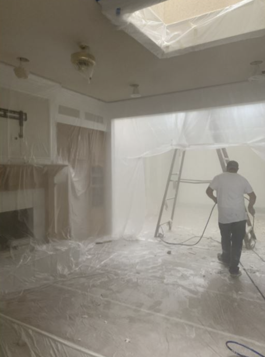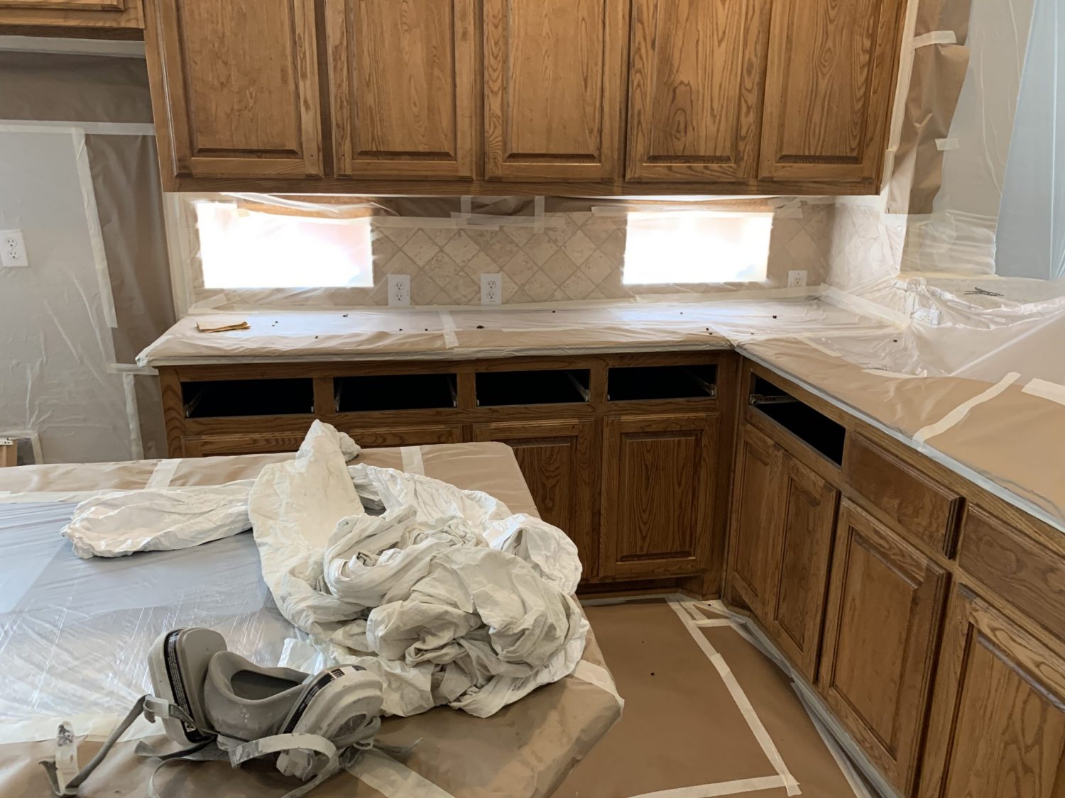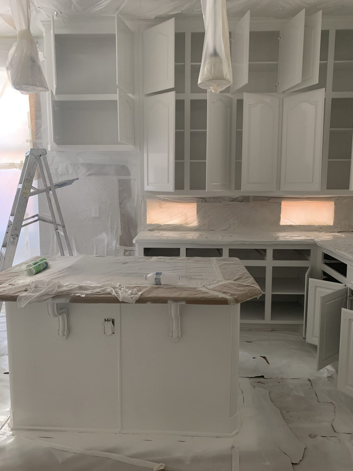 Below is an accurate representation of what goes into each cabinet painting and popcorn ceiling removal service.