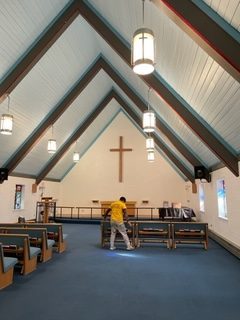 The CertaPro Painters® of Roanoke, VA team worked with a local church to update their interior of the building. At the beginning of the project, it was clear that the space needed some attention. The ceilings and walls had not been painted in roughly 20 years with cracks in the vaulted ceiling that needed repairs.