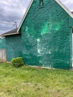 Before we began painting, we prepped the exterior by pressure-washing the surface, scraping the peeling areas, and treating the rust spots.