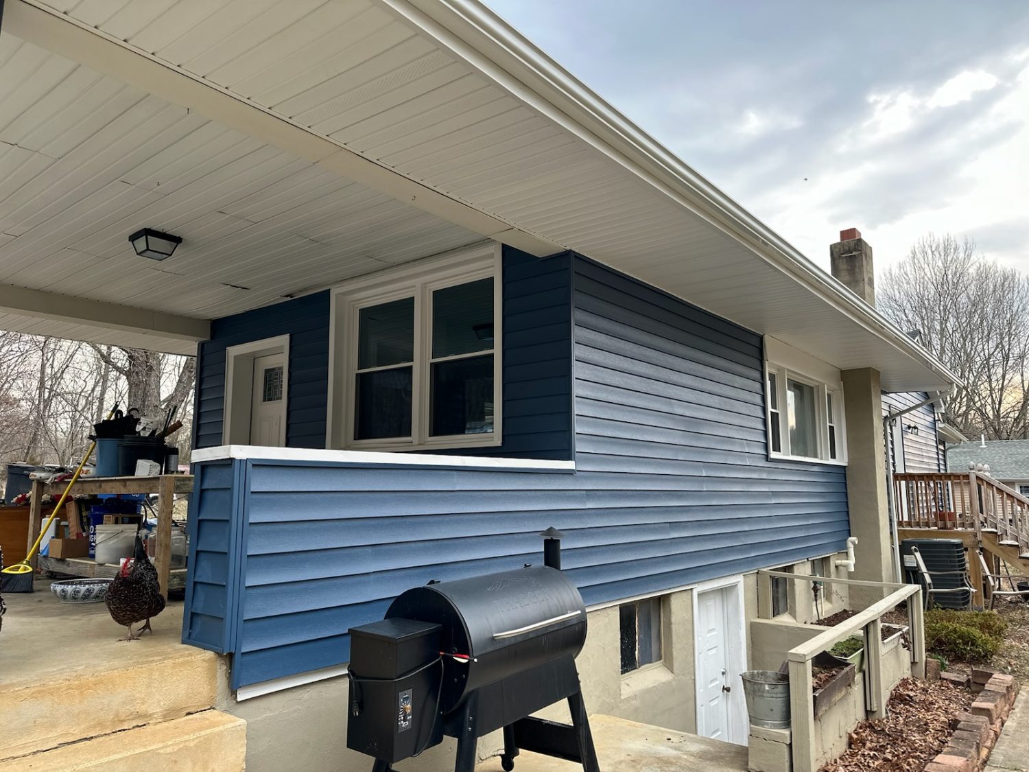 Our team was hired to change the exterior color of our client’s home, which had vinyl siding in good condition but also had dirt built up over the years. Before painting, we pressure-washed the exterior to ensure a thorough cleaning, using Sherwin Williams’ Simple Green cleaner/degreaser.