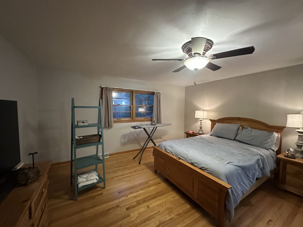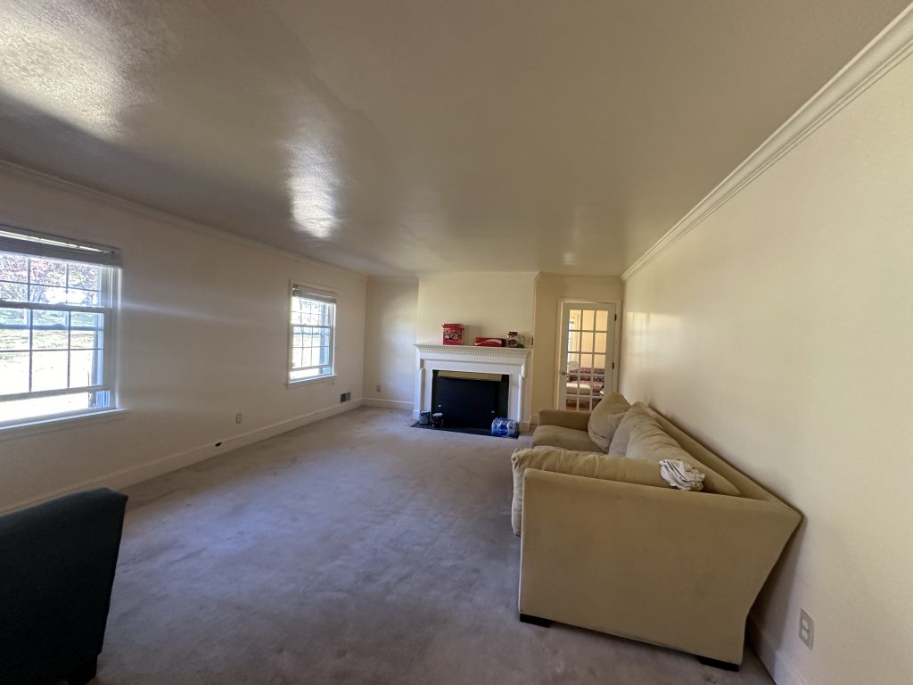 Interior: Your furniture and décor are placed in the center of the room, covered with new plastic, and all flooring is protected with drop cloths.
