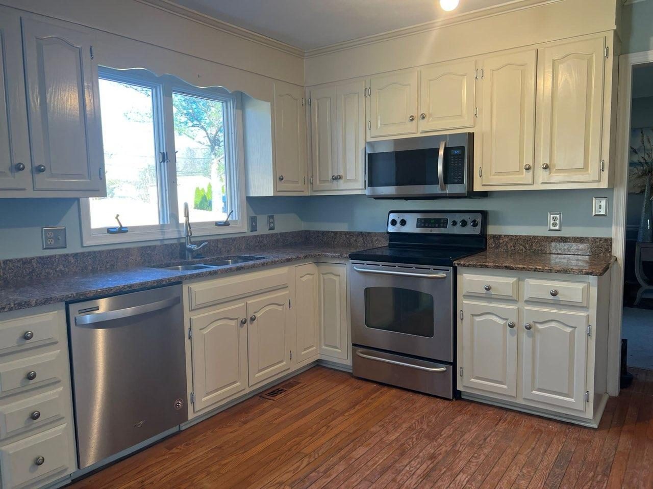 Freshly painted cabinets in the color “Stucco” SW7569 that the clients loved!