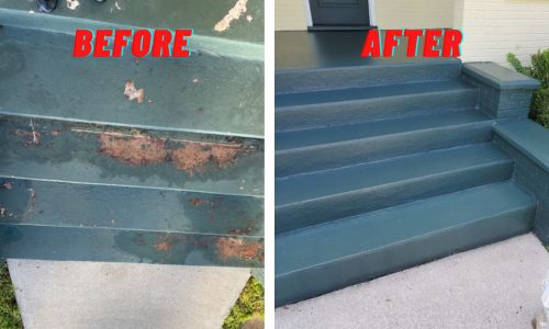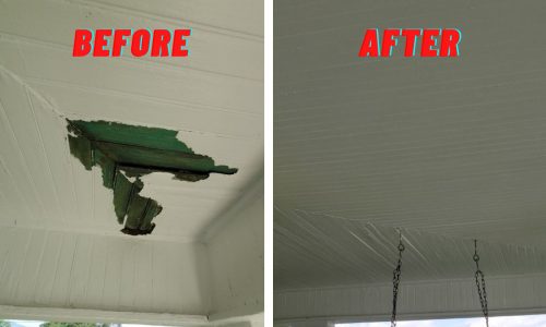 Our team was hired to repaint the porch of a residential home in July of 2022. The cement porch had severe paint failure due to wear and tear from exposure to the elements over the years. The porch ceiling also had severe paint peeling due to a previous roof leak.