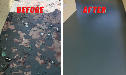 The CertaPro Painters® of Roanoke, VA crew started the project by pressure washing, scraping, and sanding the porch floor and steps. The team also scuff-sanded some areas to create a profile that the new paint product would adhere to. Once the damaged areas were scrapped and sanded, we coated the floor with Sherwin Williams ArmorSeal® Tread-Plex™, which is an industrial protective marine coating. The project took two days to complete and resulted in a stunning finish the clients loved!