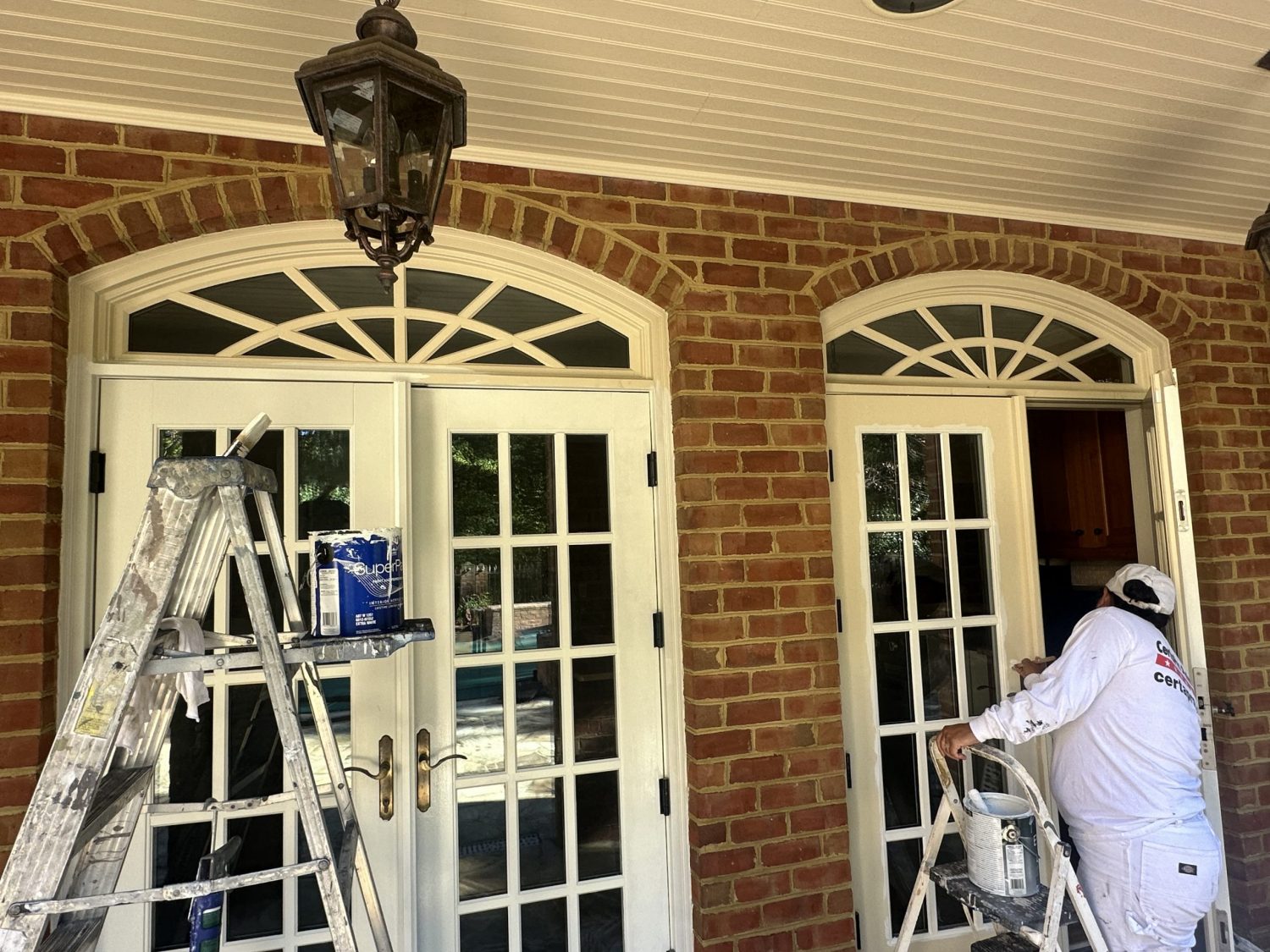 One of the main challenges was painting the high window frames, which required large ladders and careful safety measures to protect both our team and passersby. Additionally, due to the home’s brick design, we were unable to use spray painting. Instead, we painted the window frames by hand with brushes to prevent overspray on the brick.