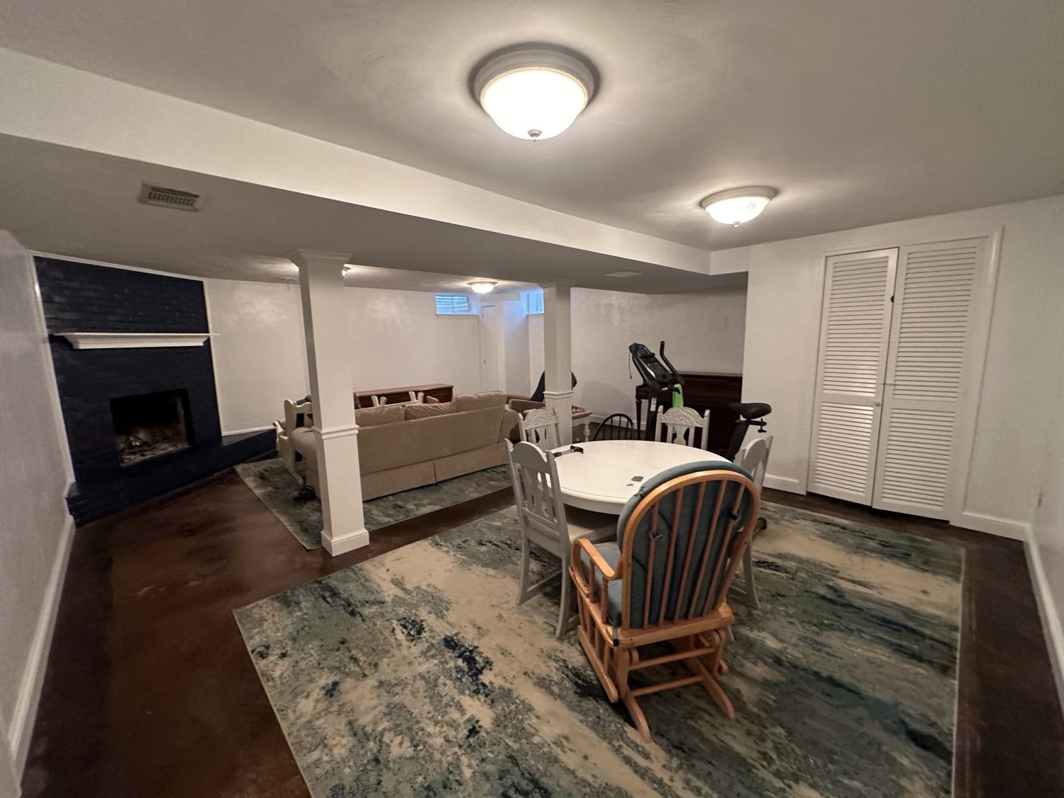 The primary challenge was the complete color change of the fireplace in the living room and the office. The office shifted from green to navy, and the fireplace changed from off-white to navy. Our crew overcame this challenge by effectively scuff sanding and priming to ensure the darker navy blue seamlessly covered the previous colors without any bleeding.