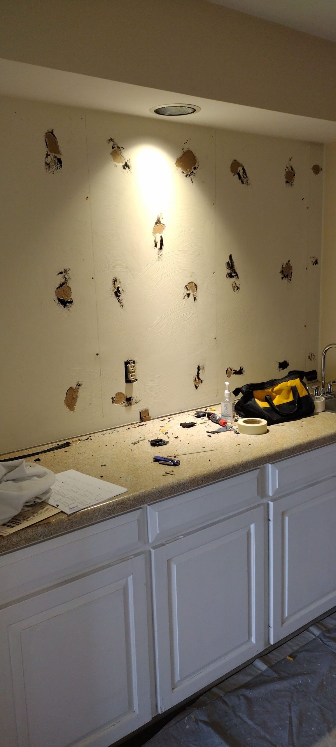 Prior to the start of our project, the homeowner had wall repairs done, but some areas of the drywall repair required sanding to prepare for painting. Additionally, some of the walls had a decorative plaster texture, which required our team to mimic the design when they re-plastered these areas that needed to be sanded. Our crew was able to use a feathering technique to successfully blend the new areas to the old texture!