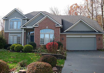 Here is another brick and siding home that features blended color scheme. Dark shutters highlight the windows well. Take note of the keystones painted black over each window - matching the shutters. Attention to details like this can make or break the visual appeal of a house.