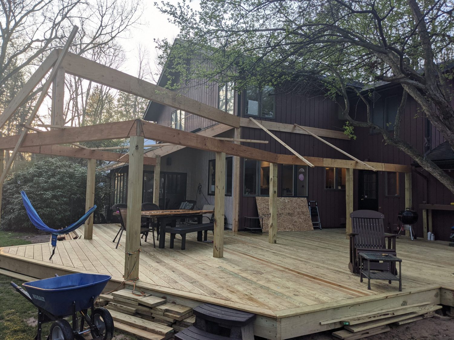 In addition to deck painting and staining, our contractors are also highly-skilled when it comes to deck building. Having a deck built is a great way to add a specific section for outdoor entertainment at your home. A custom deck is the perfect place to enjoy year-round with your family and friends. Check out some photos of one of our deck building projects below.