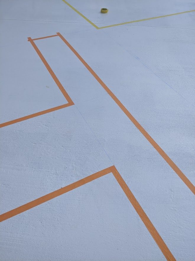 Highly detailed layout, and use of challenging products and short deliverable timeline to meet the clients inspection needs. We also used laser guides for the layout. This was a technically challenging project utilizing specific materials that needed to be prepared and applied in limit time frames.