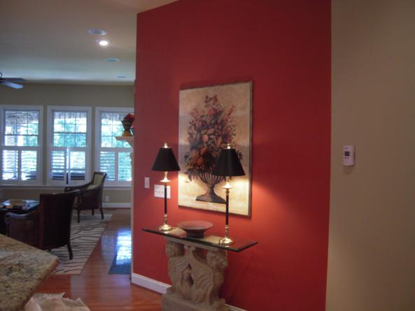 For one Fort Mill resident living in Baxter Village, an interior re-paint included the addition of an accent wall painted in a bold and contrasting color choice.