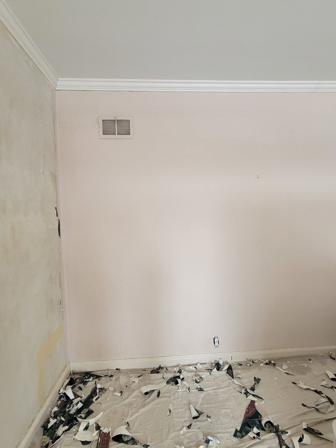 Project Challenges: The primary challenge was the removal of the old wallpaper. The adhesive had hardened over time, making it difficult to penetrate and remove. Our team encountered considerable difficulty in saturating the adhesive, requiring careful and persistent effort to ensure the walls were prepared for a fresh coat of paint.