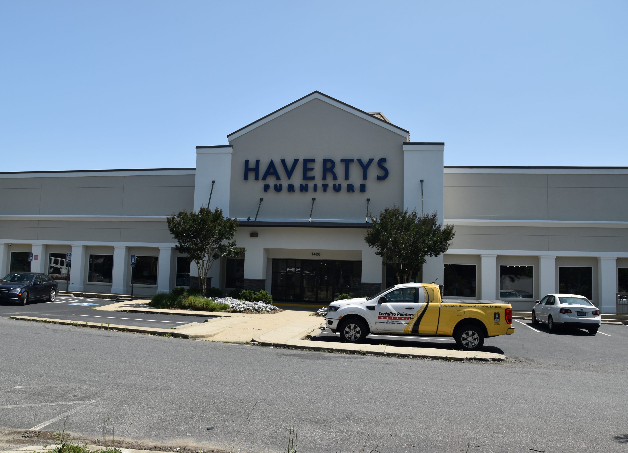 The experts at CertaPro Painters® of Rockville/Potomac, MD, did an incredible job repainting the stucco exterior of this Havertys Furniture store in Rockville, MD.