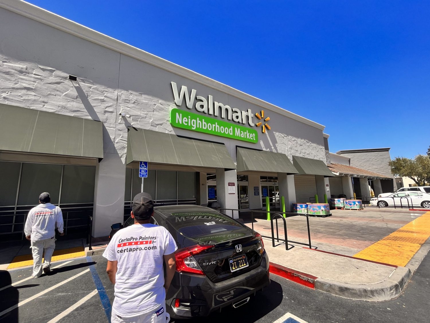 To address the issues, our team of painters began with masking signs and other hazards to avoid overspray and power-washing the high points on buildings such as Best Buy, Walmart and Barnes and Noble.