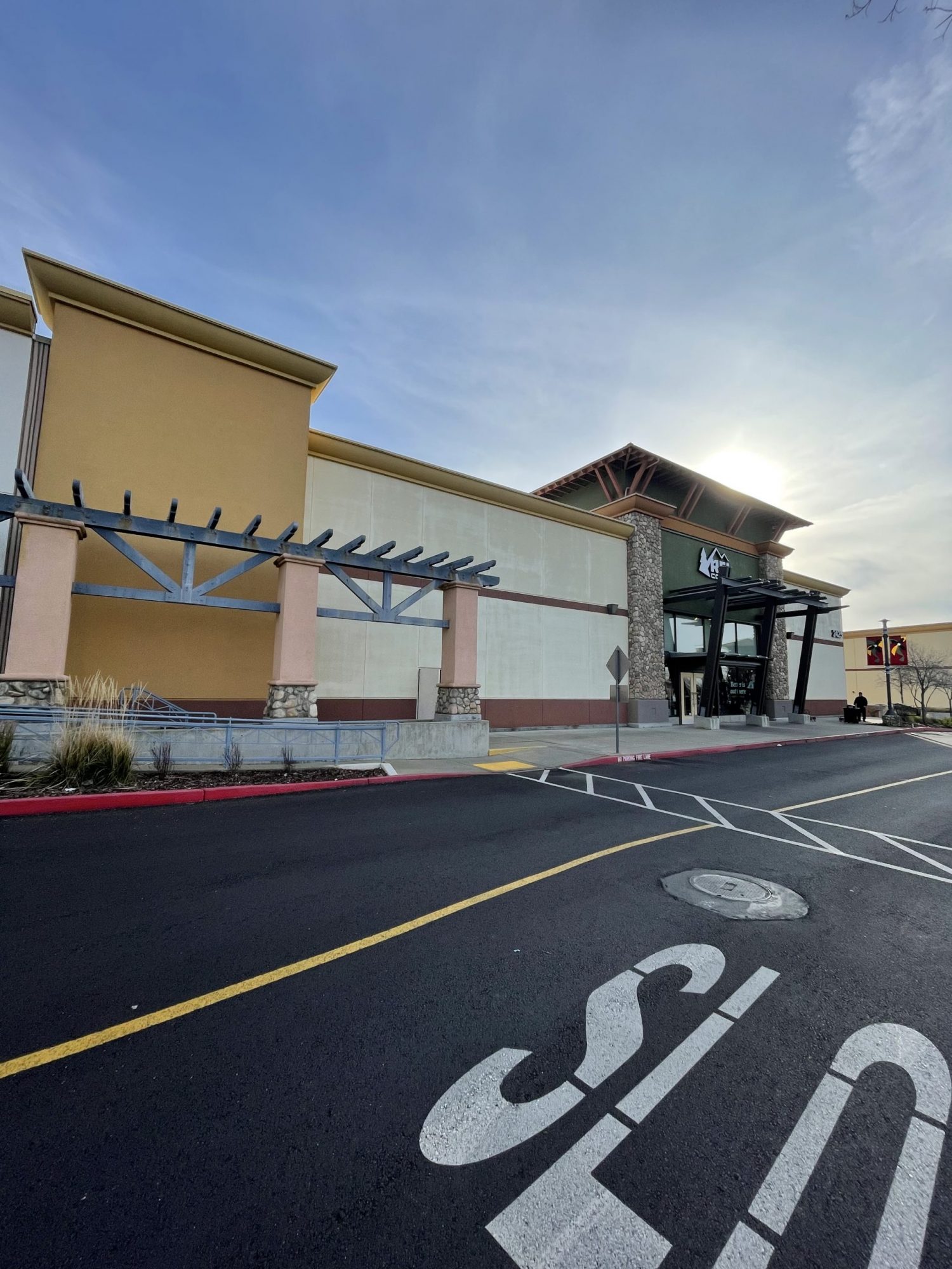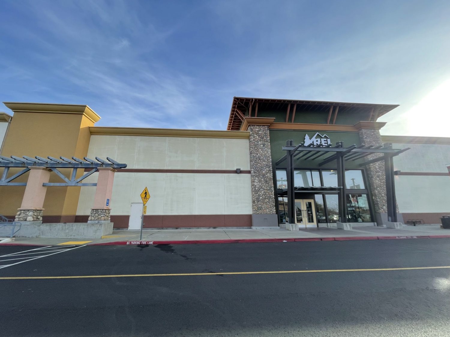 The REI in Folsom, CA contacted us to revive the exterior of their store. Upon starting the project, we noticed that the stucco around the entrance had become dry and faded due to sun exposure. It required a thorough power wash and a fresh coat of paint.