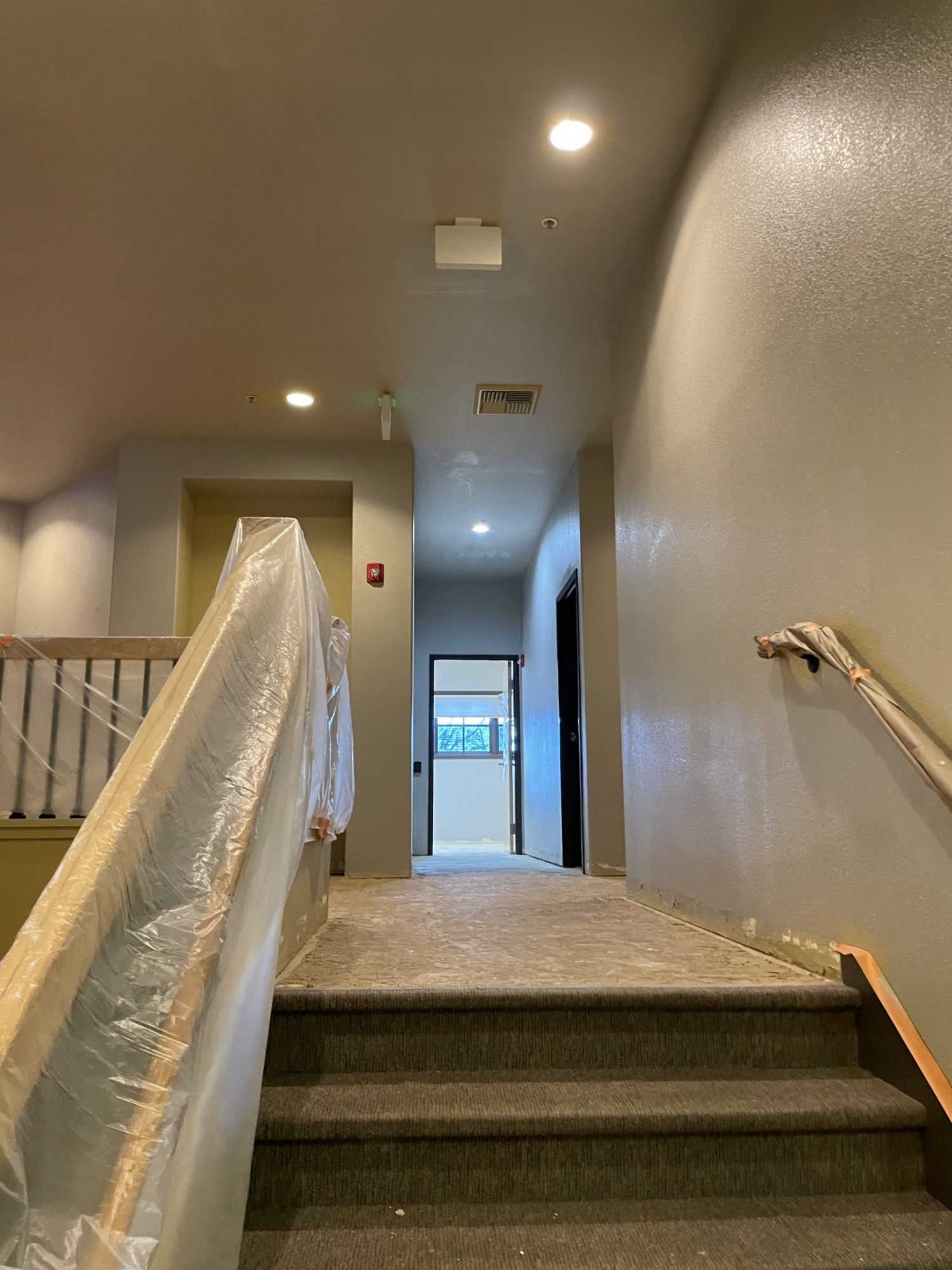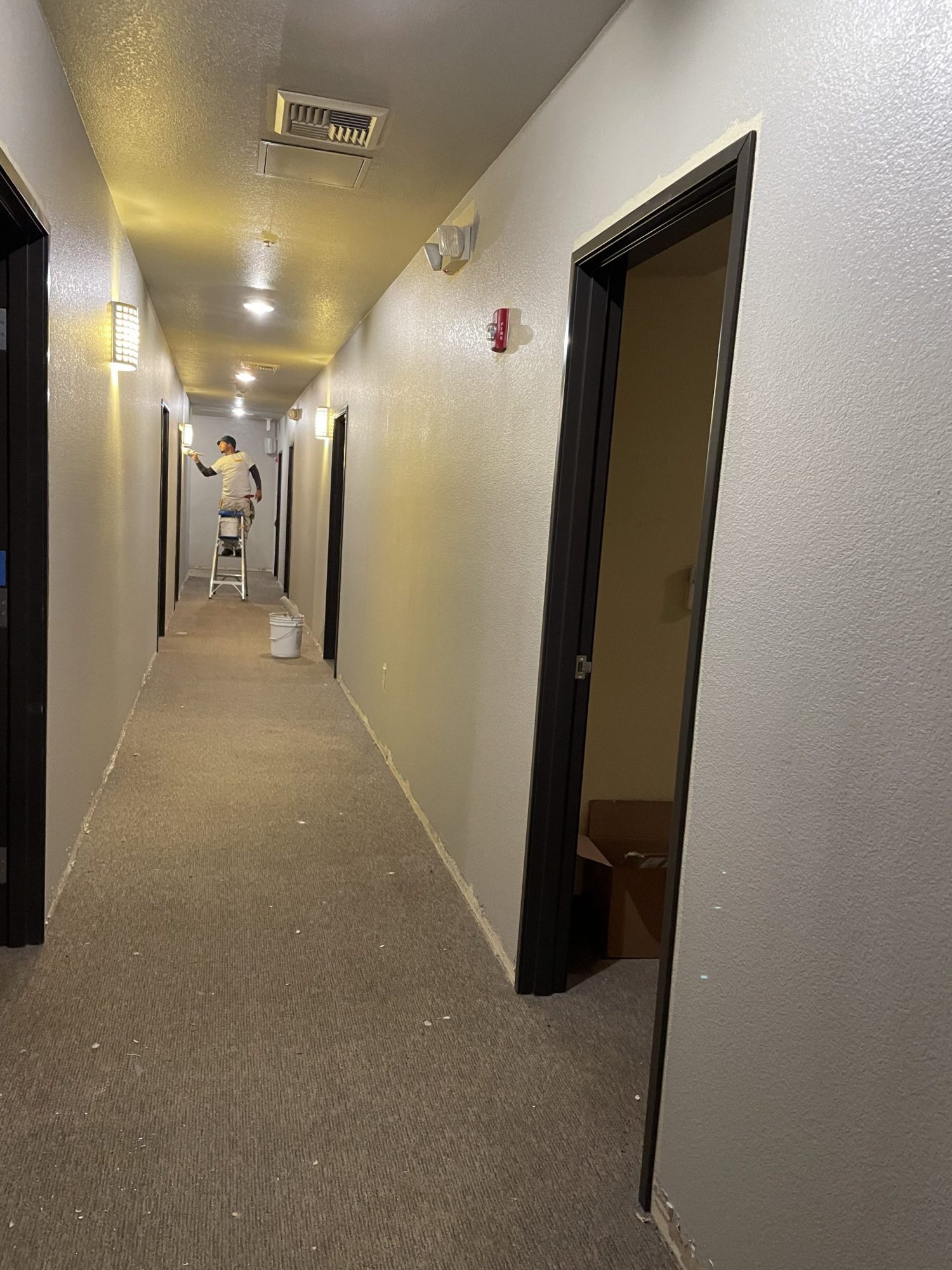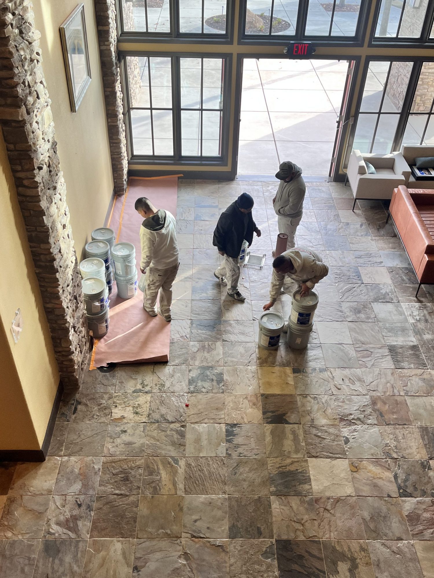 The facility was two story, one side of the building being a dormitory and the other was offices with common rooms in the center. For us, this project only required painting, with some very small wall repair. Our team was up for the challenge and worked with the elements even though they were having new carpets installed while we were there painting. They hired movers to move the furniture around for both us and the carpet installers. We worked it out with the movers and carpet people to paint ahead of them so there was no concern about us getting paint on the new carpet.