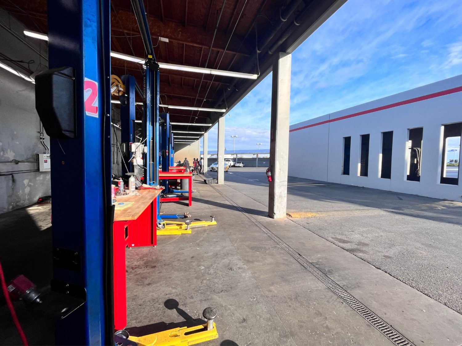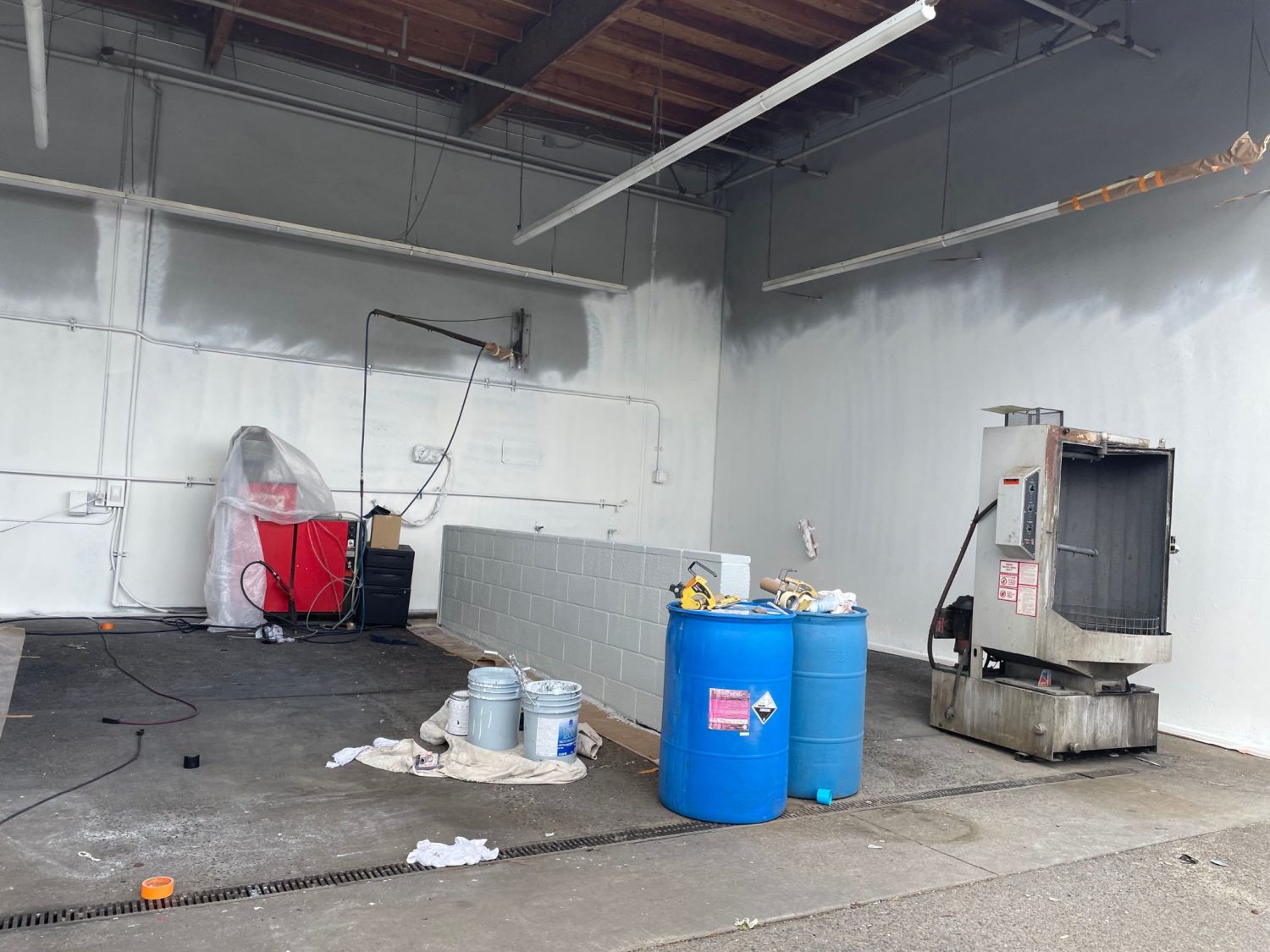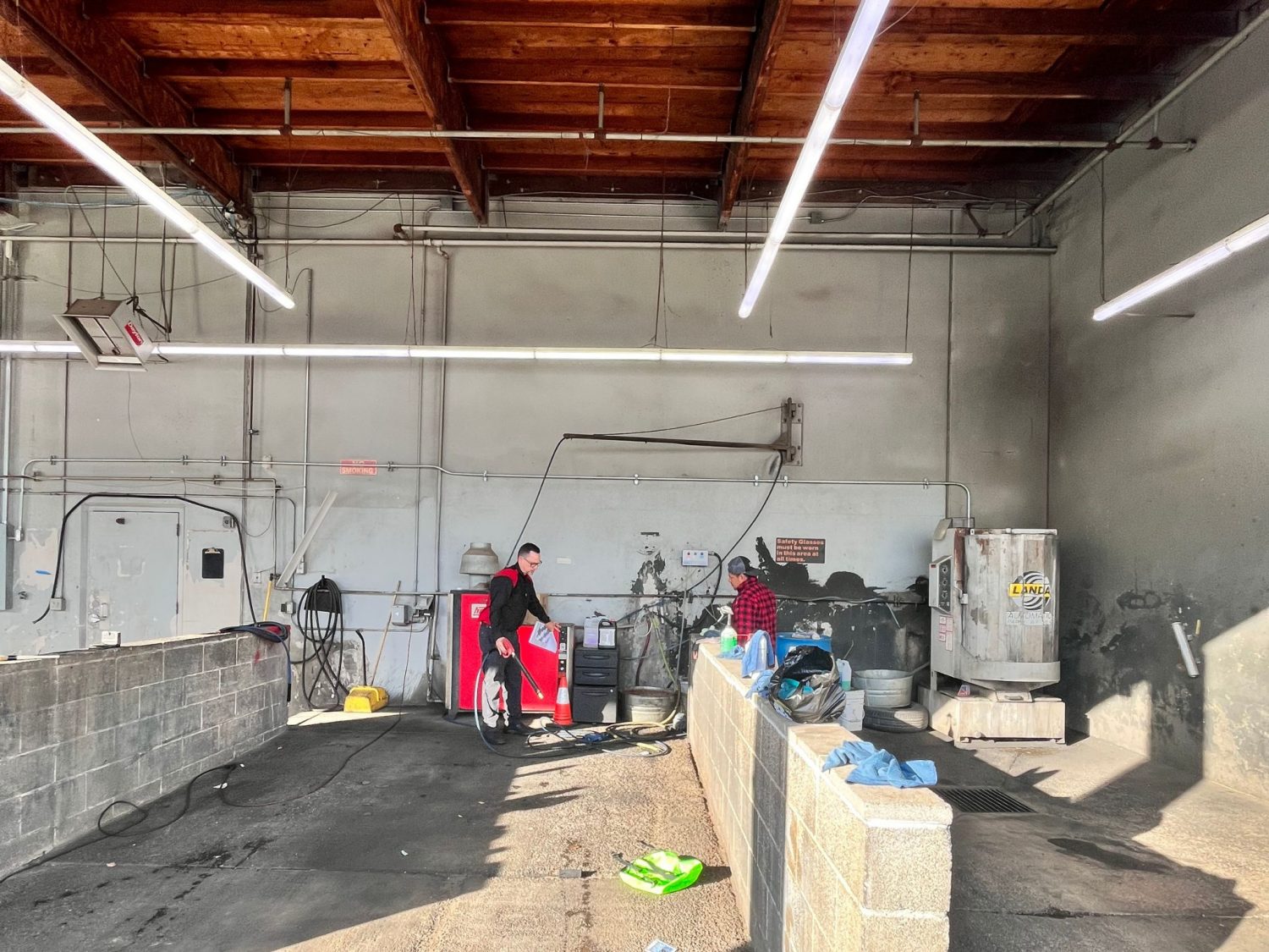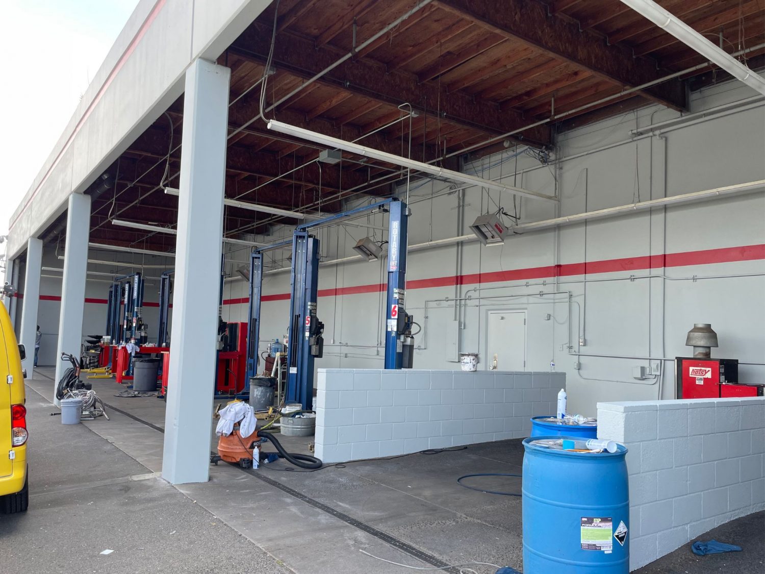 This project involved a heavy amount of cleaning, degreasing and pressure washing the walls to prepare them for paint. We primed and painted the walls of the open bay to match the color scheme of the building’s exterior.