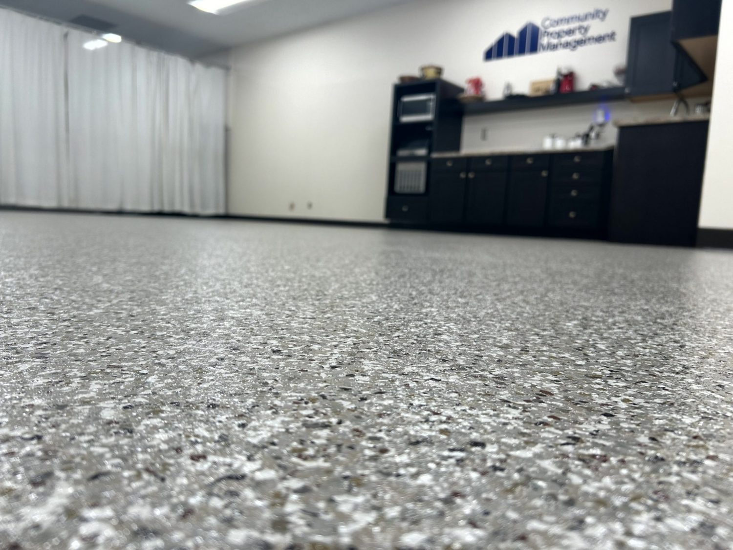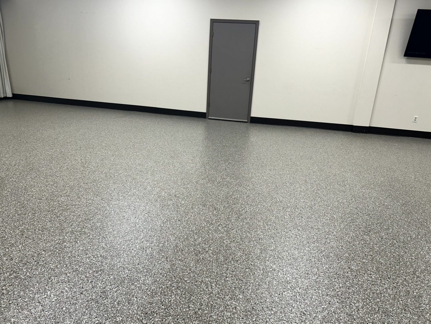 Our team at CertaPro Painters® of St. Charles was tasked to refresh a commercial floor using water-based Epoxy with polyaspartic flake. Below is the process from start to finish!