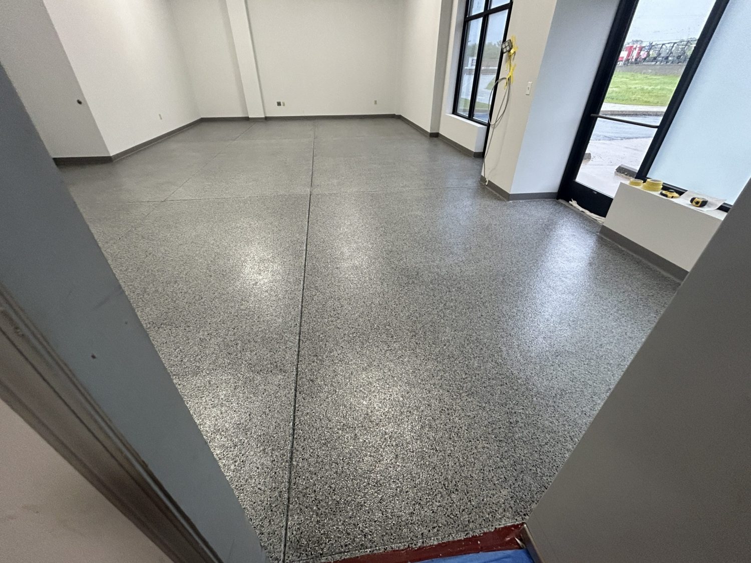 Our team at CertaPro Painters® of St. Charles was tasked to refresh a commercial floor using polyaspartic flake in St. Peters, MO. Below is the process from start to finish!