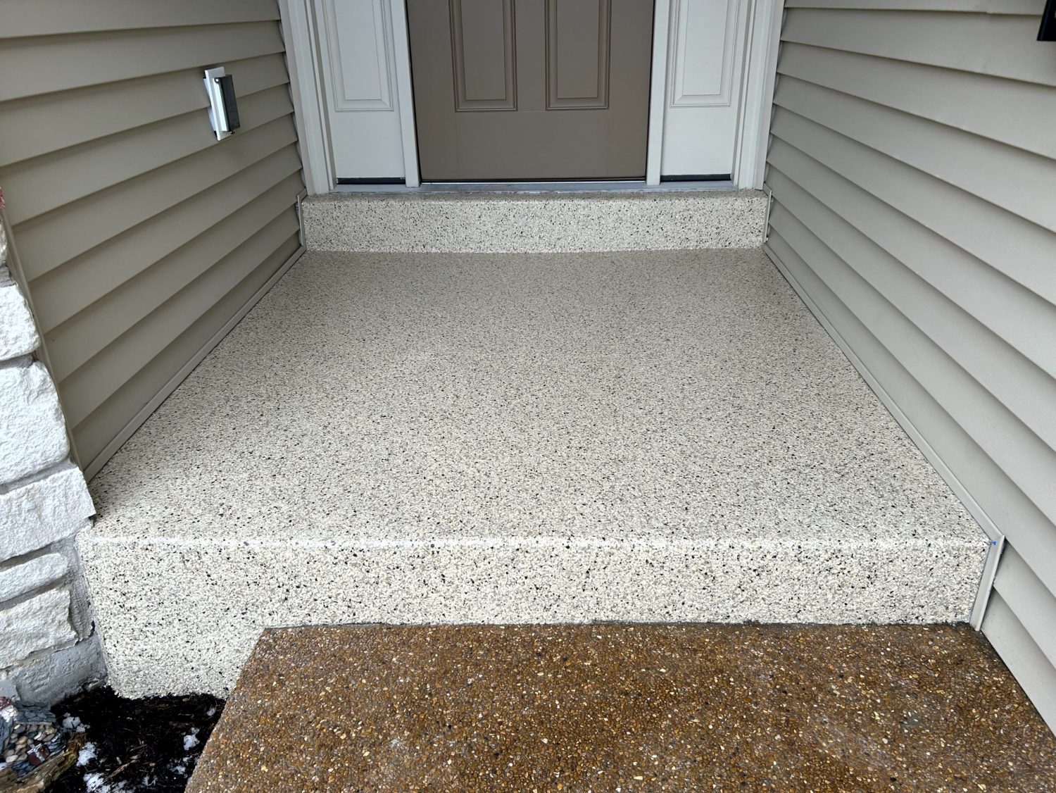 Our team at CertaPro Painters® of St. Charles refreshed this patio in St. Peters using a Polyaspartic Flake. Check out the process from start to finish!