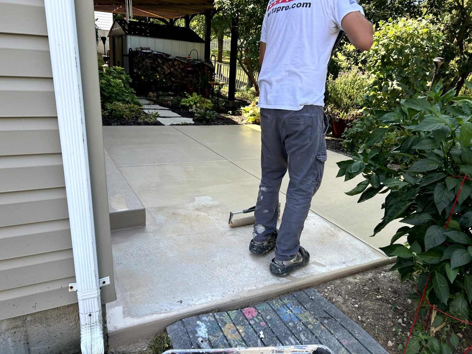 Our team at CertaPro Painters® of St. Charles refreshed this patio in Oakville using a solid concrete stain. Check out the process from start to finish!