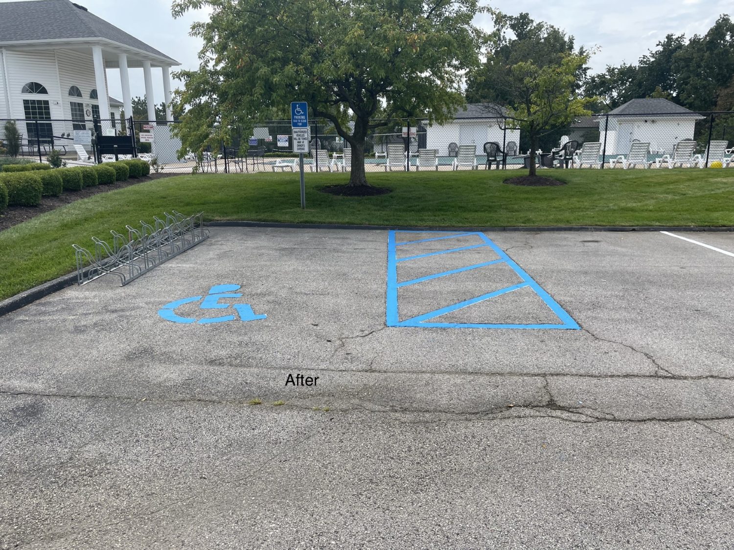 Our team was requested to repaint the parking stripes at the recreation building of the Monticello in O’Fallon.
