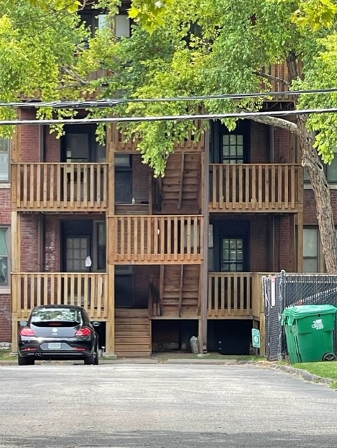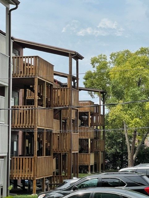 Wood stainig project for an apartment complex’s porch and stairwell in Rolla, MO.