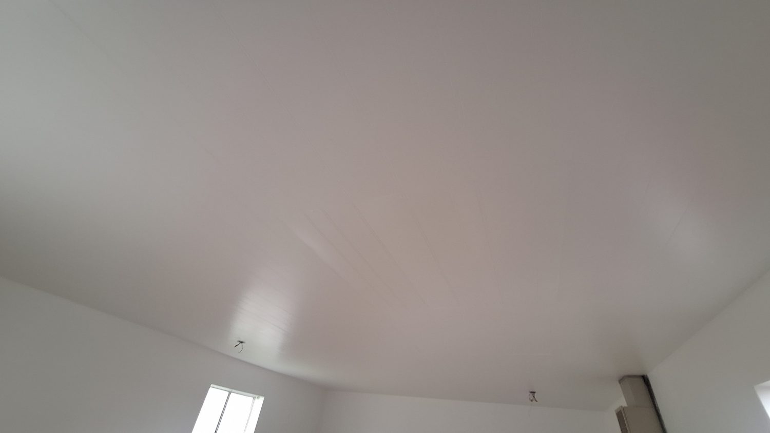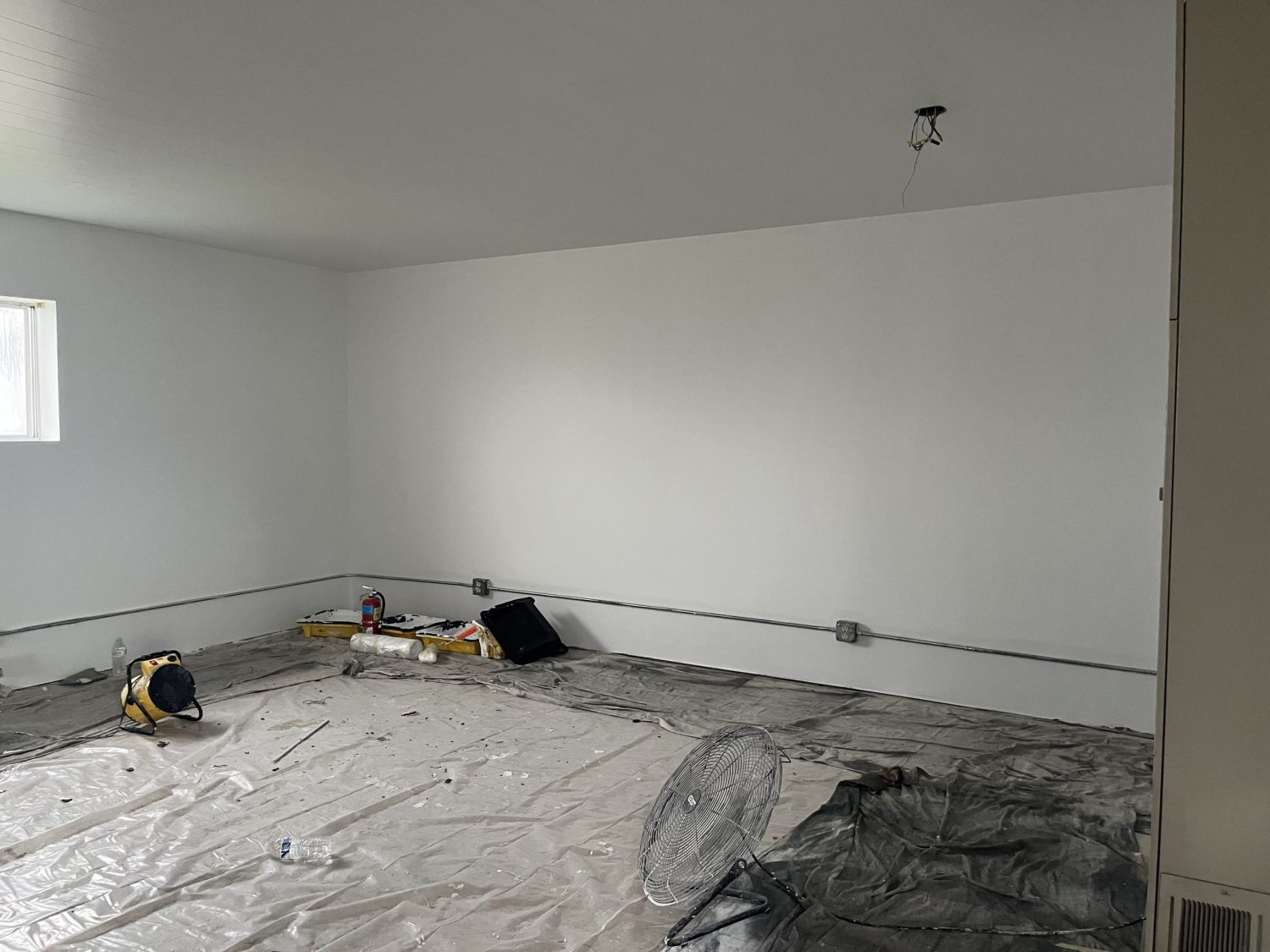 At the start of the project, the interior surfaces were unfinished and lacked consistency. The walls were constructed with laminate sheetrock that had not been painted or textured, leaving visible seams and an incomplete appearance.
