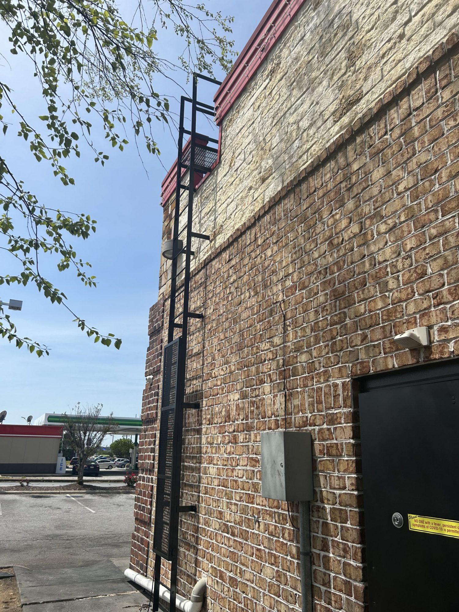 We needed to sand, prime, and paint the exterior of multiple surfaces in each restaurant space. Each restaurant had a different layout, and we had to paint using the required company colors.