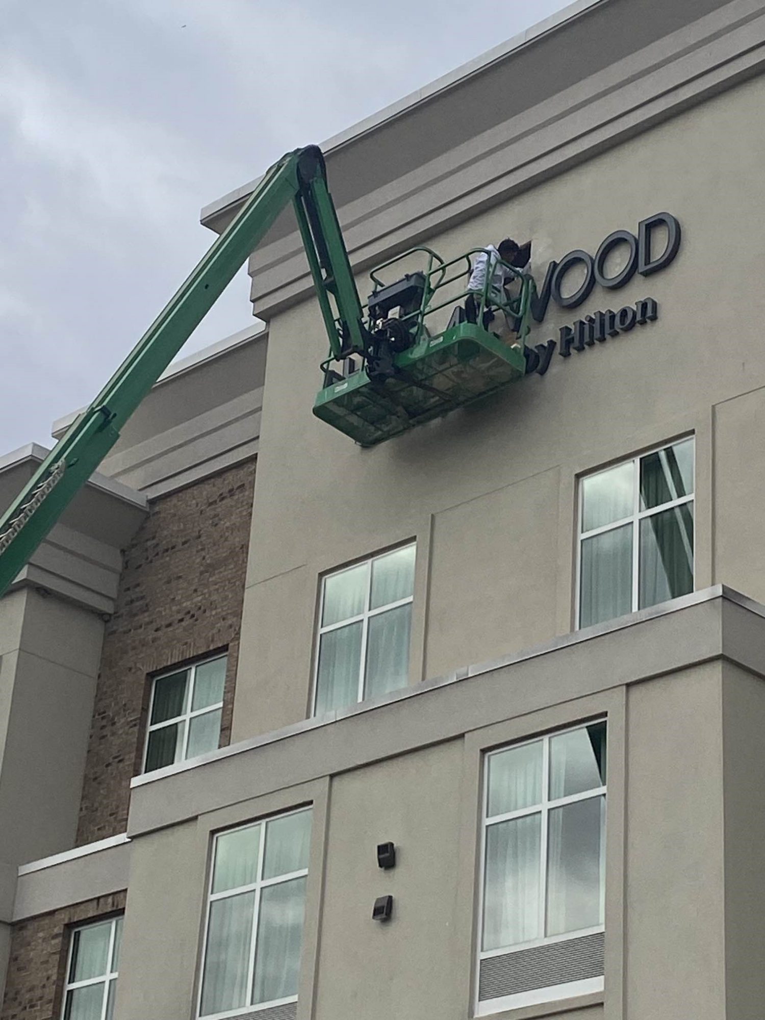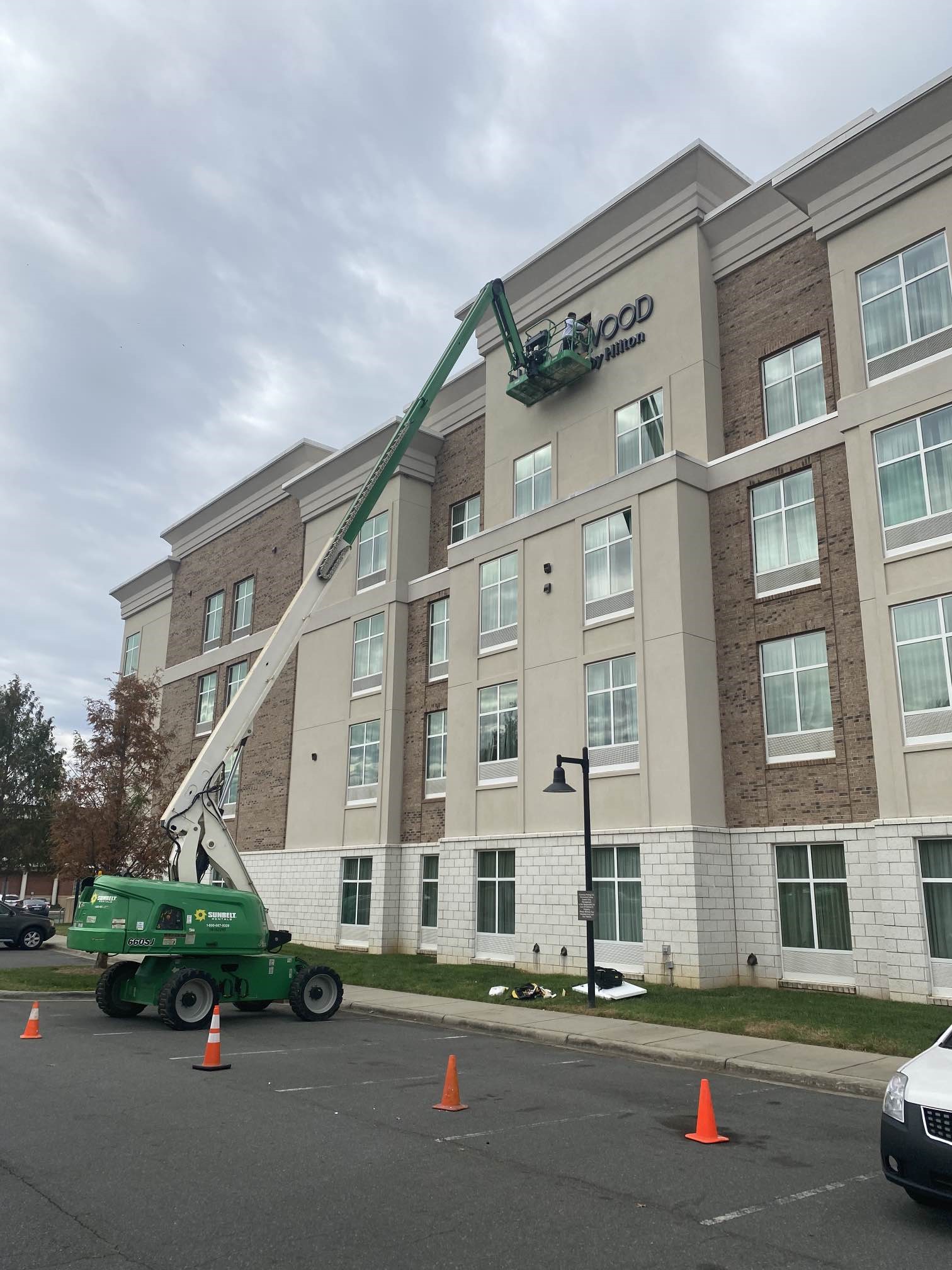 Exterior painting project of the hotel facility, Homewood Suites in the Ballantyne neighborhood.