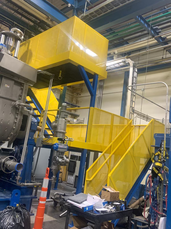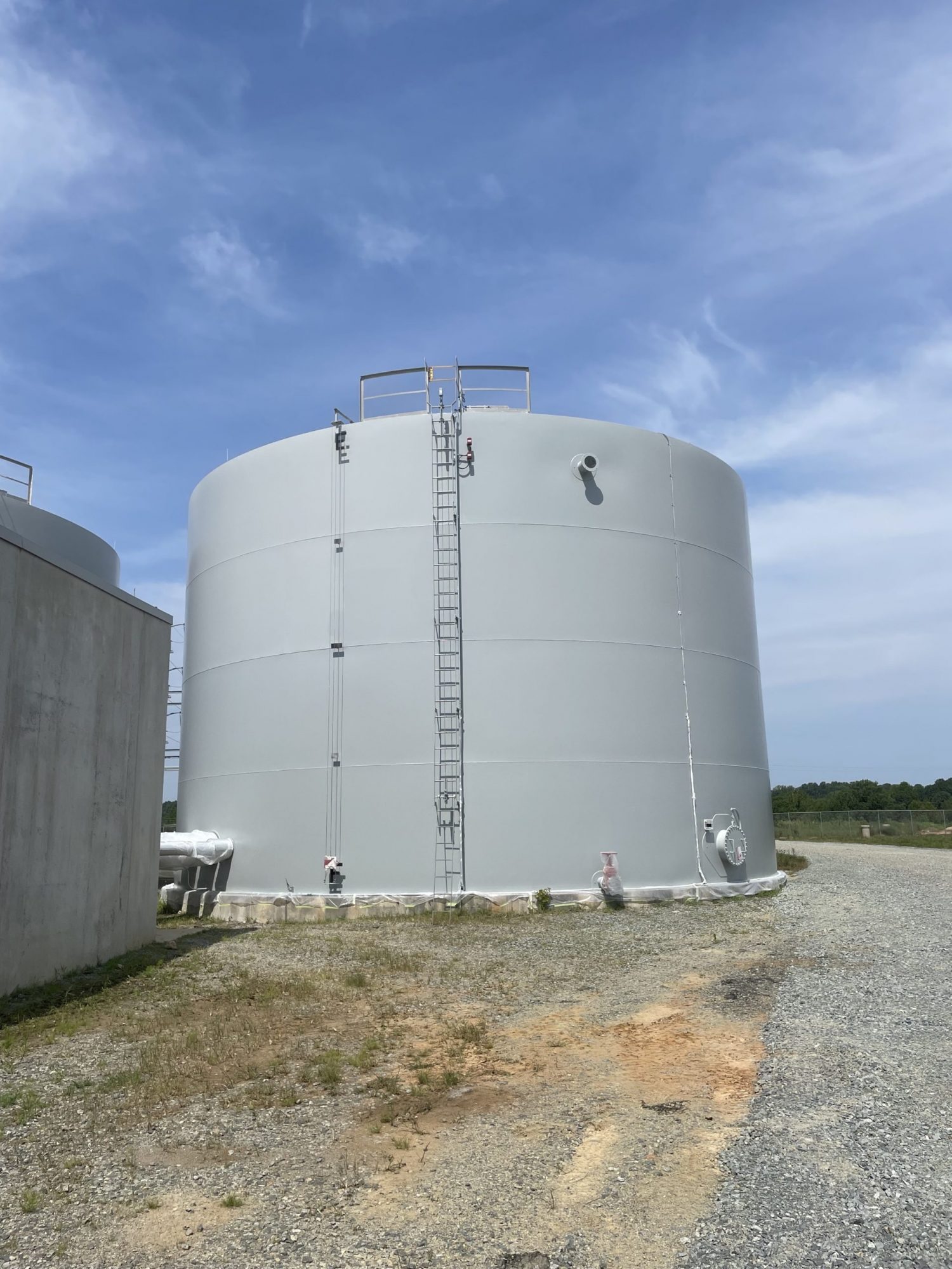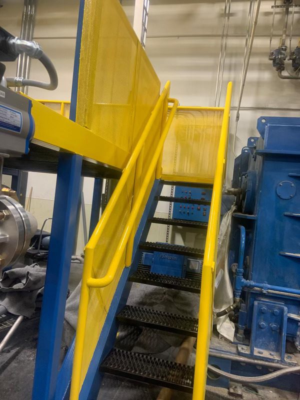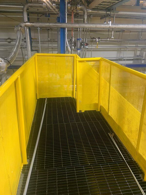 Our team worked with this industrial company to update their industrial equipment exterior tanks and interior stairwell area.