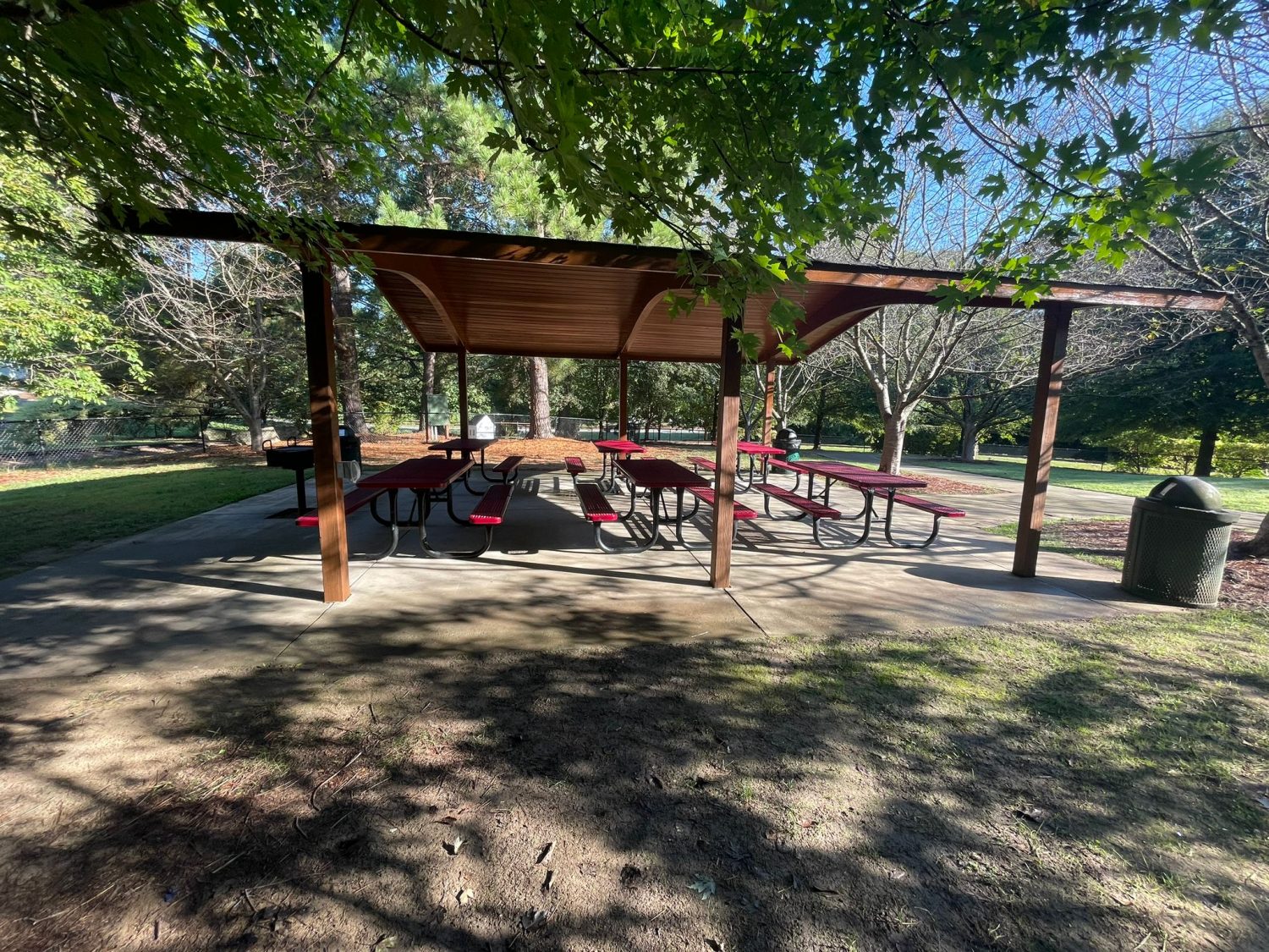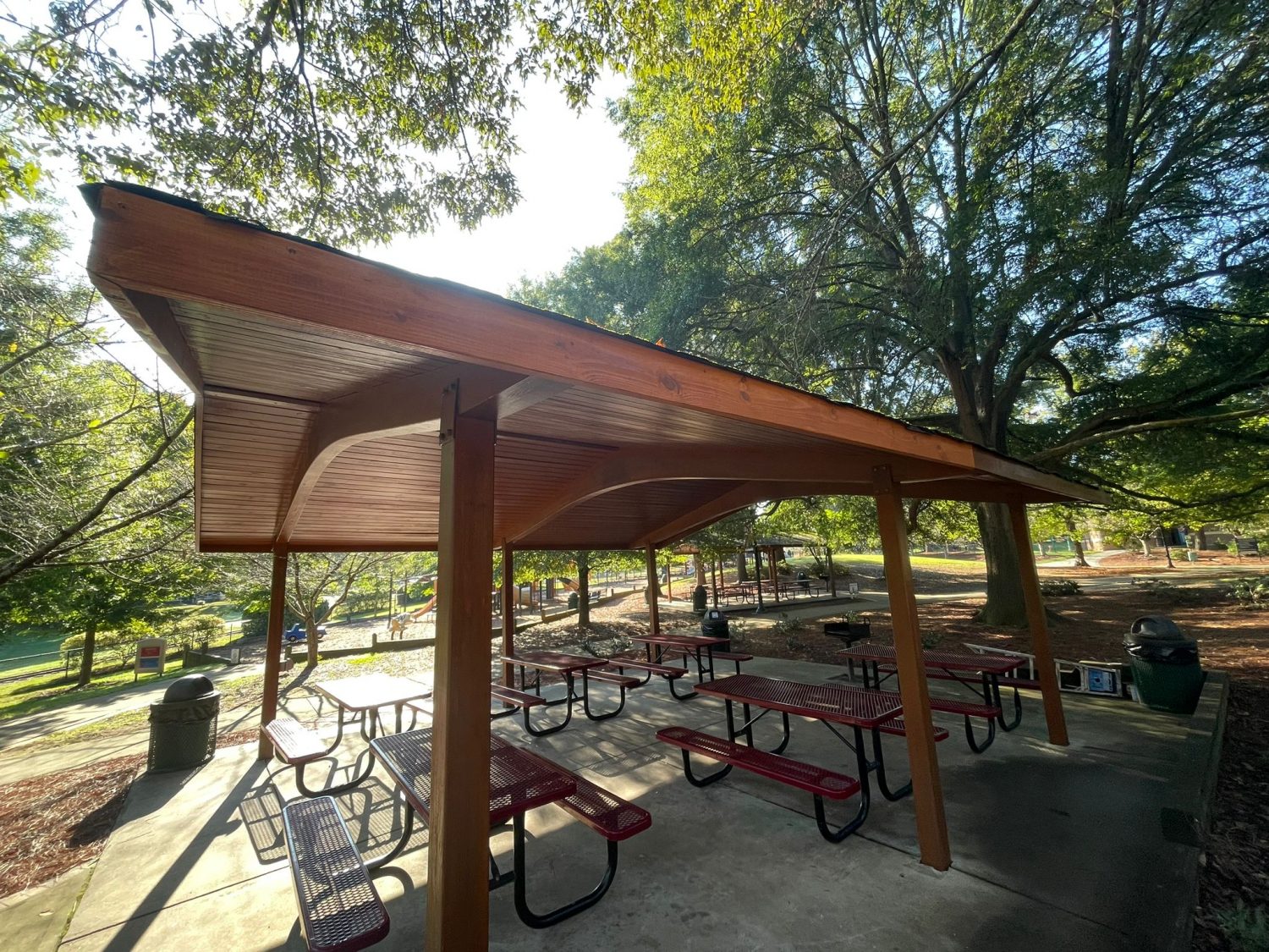 Our team helped paint and stain the sheltered picnic area or gazebos at the Kannapolis Village Park.